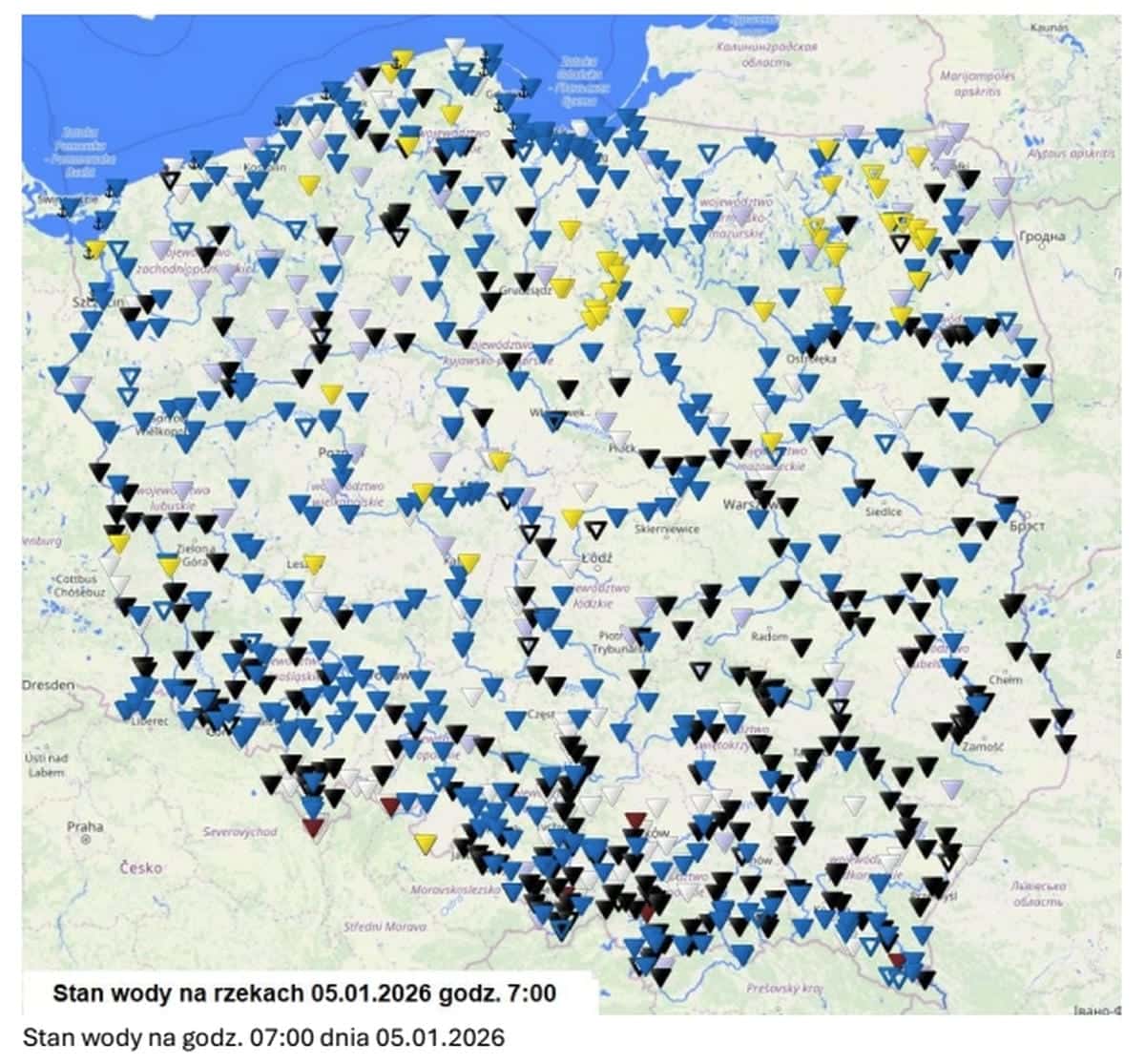 Jednocześnie IMGW informuje, że wraz z utrzymywaniem się mrozu możliwy jest dalszy rozwój zjawisk lodowych, m.in. w zlewni Pregoły. Zjawiska te mogą w kolejnych dniach powodować lokalne i krótkotrwałe wahania poziomu wody.