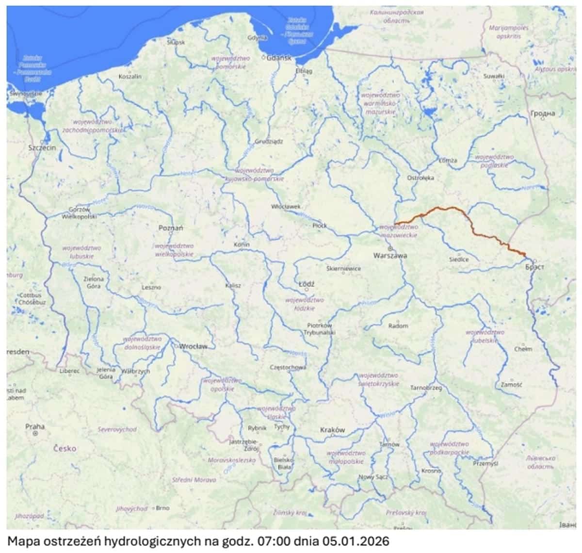 Jeśli chodzi o sytuację hydrologiczną, w województwie warmińsko-mazurskim nie odnotowano przekroczeń stanów ostrzegawczych ani alarmowych. Rzeki regionu pozostają głównie w strefie wody średniej i niskiej, a sytuacja oceniana jest jako stabilna.