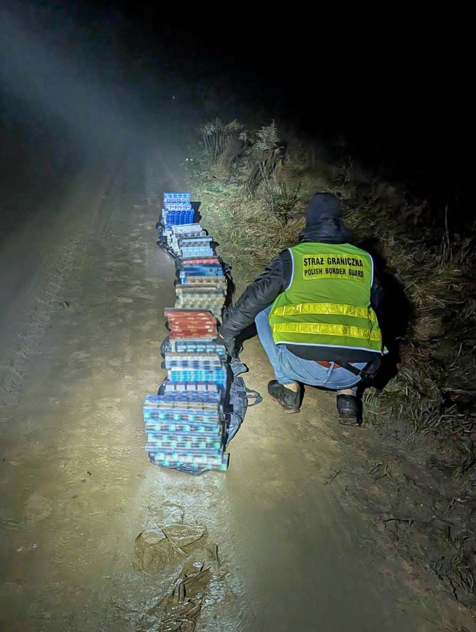 Na łące oraz w samochodzie funkcjonariusze ujawnili łącznie 47 tysięcy sztuk papierosów. Były to wyroby pochodzące z nielegalnej produkcji, a także papierosy oznaczone białoruską akcyzą. Zabezpieczono kilkanaście różnych rodzajów wyrobów tytoniowych, które nie posiadały obowiązujących polskich znaków skarbowych akcyzy.