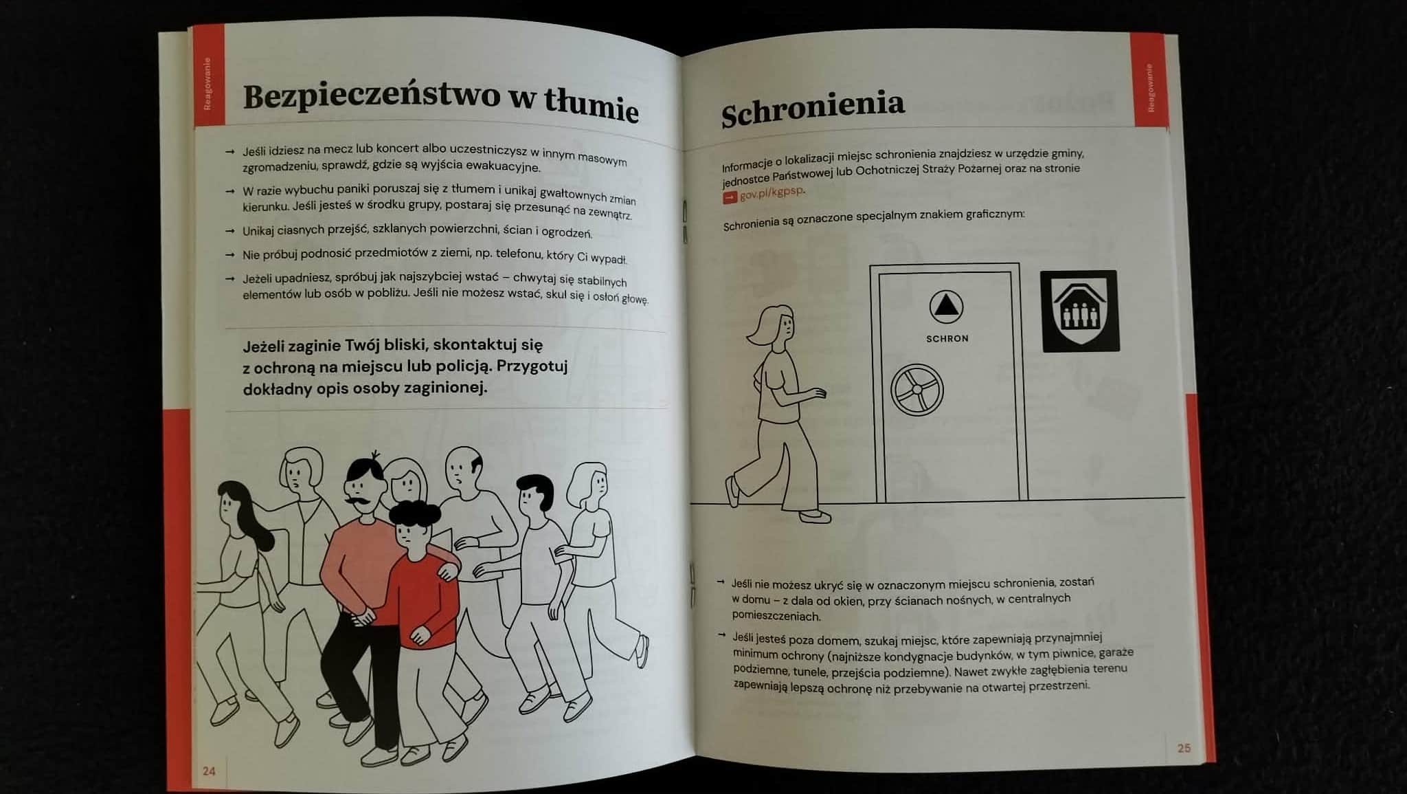 Znajdują się tam również wskazówki dotyczące pierwszej pomocy, zabezpieczenia domu, dokumentów i najważniejszych rzeczy potrzebnych w nagłych sytuacjach.