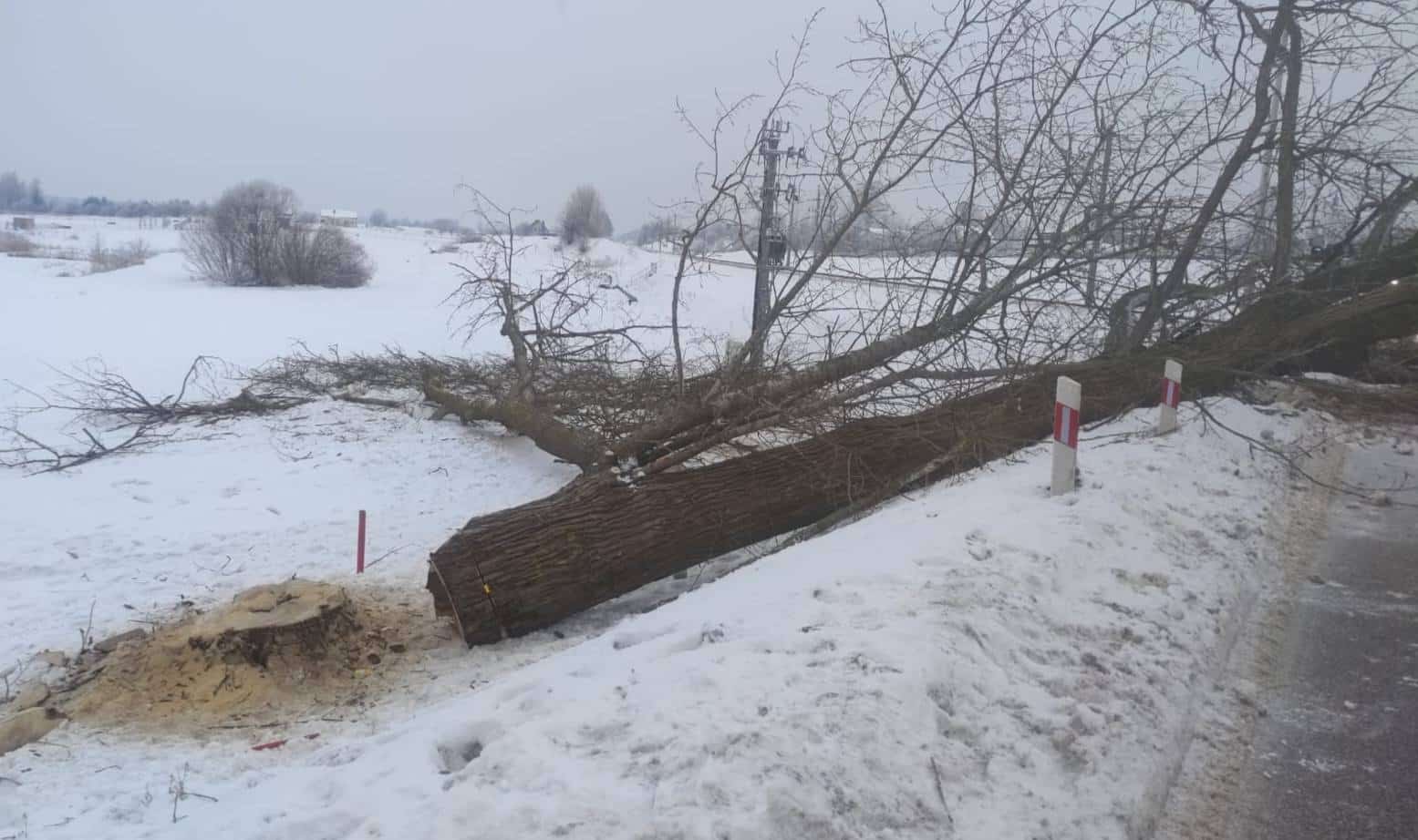 Do zdarzenia doszło 10 lutego po godzinie 16. Jak poinformowała Komenda Powiatowa Policji w Ełku, w miejscowości Siedliska w gminie Ełk powalone drzewo zablokowało drogę oraz przejazd kolejowy. Ruch został całkowicie wstrzymany zarówno od strony Ełku, jak i Chrzanowa.