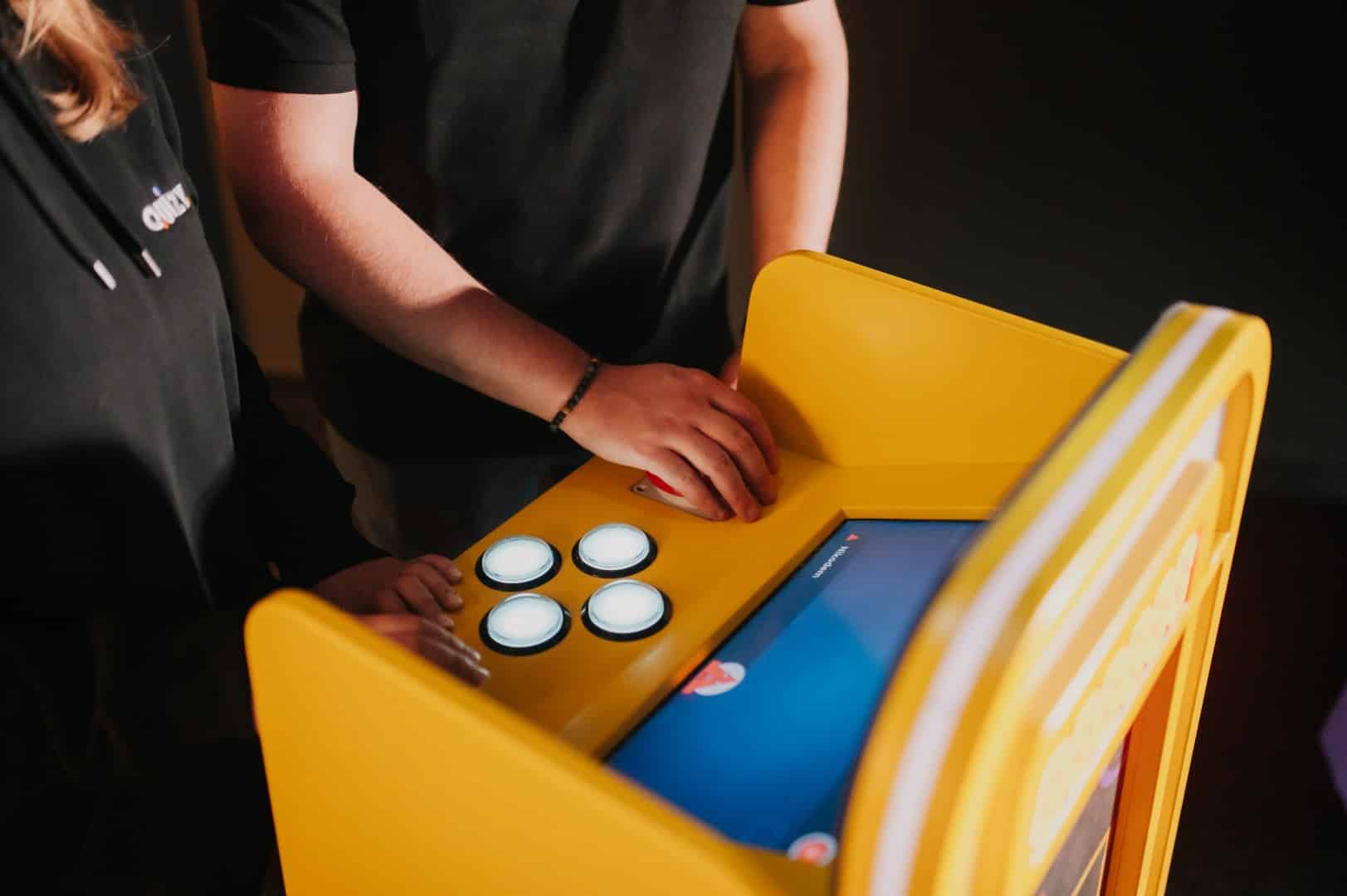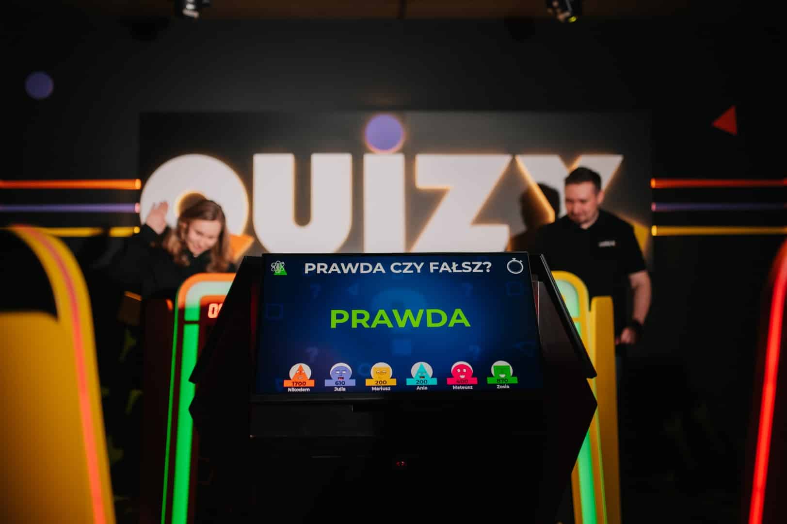 Zamiast oglądać teleturniej w telewizji, tutaj stajesz przy pulpicie z przyciskiem, słyszysz sygnał startu i rywalizujesz z innymi drużynami w dynamicznych rundach pytań.