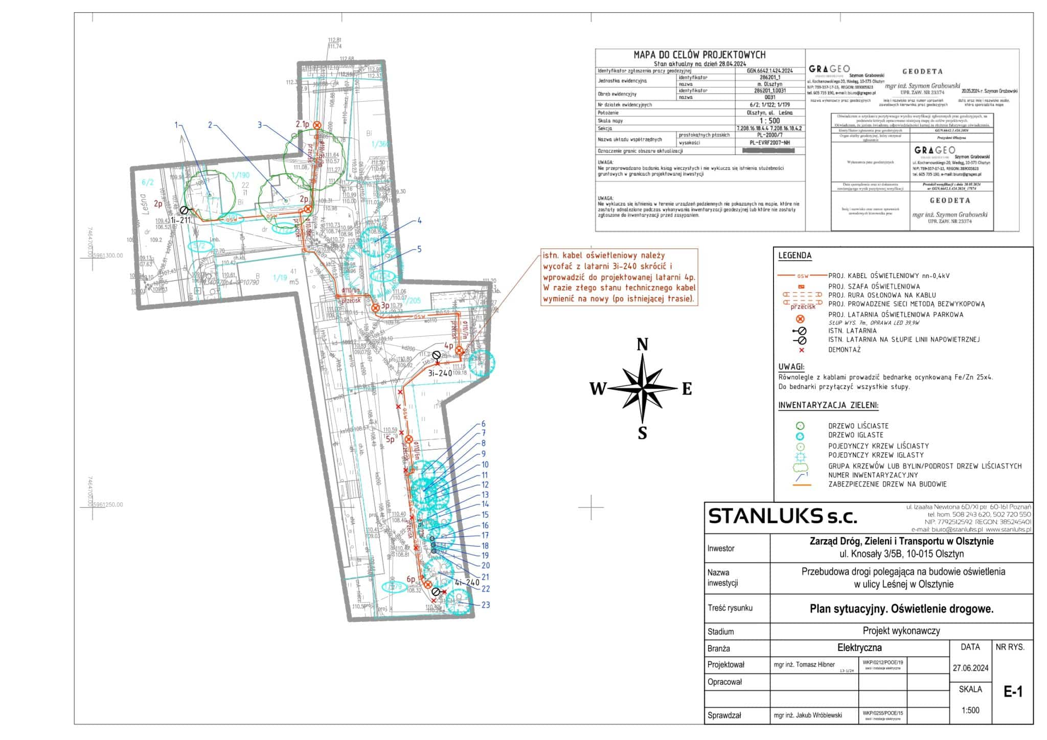 W przypadku ulicy Kanta projekt obejmuje również demontaż starej latarni i wymianę szafy oświetleniowej . Przy Leśnej część istniejących słupów zostanie wymieniona.