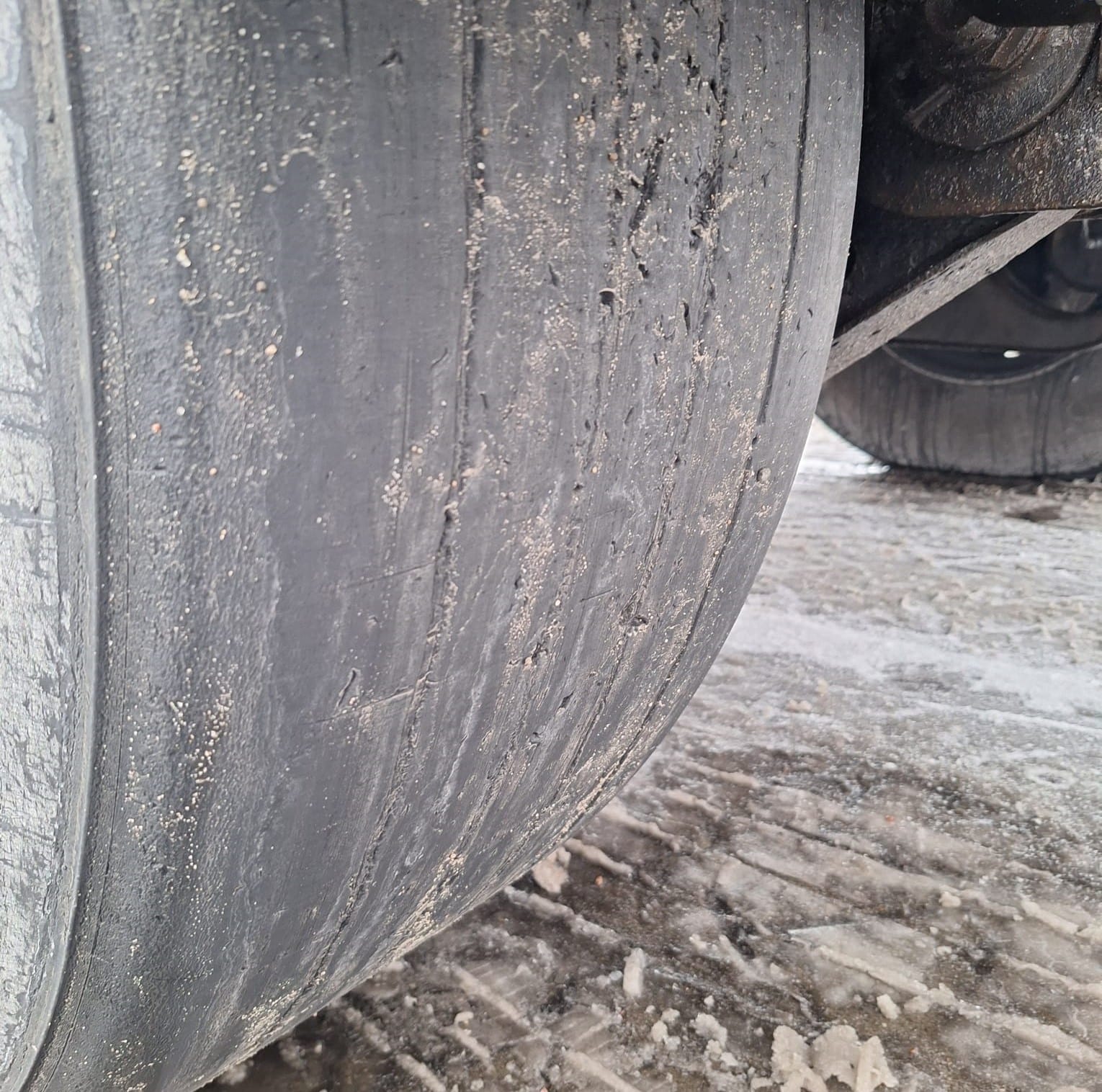 Podczas szczegółowej kontroli funkcjonariusze ujawnili skrajnie zużyte ogumienie. Bieżnik opon był niemal całkowicie starty, co w przypadku pojazdu ciężarowego znacząco wydłuża drogę hamowania i zwiększa ryzyko poślizgu.