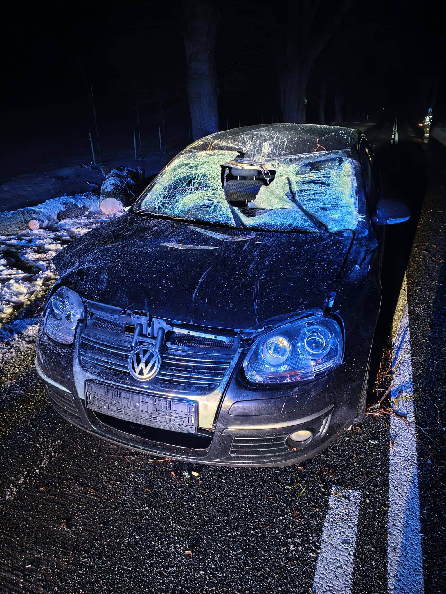 Służby apelują do kierowców o zachowanie szczególnej ostrożności, zwłaszcza po zmroku oraz w rejonach, gdzie drzewa rosną bezpośrednio przy jezdni.