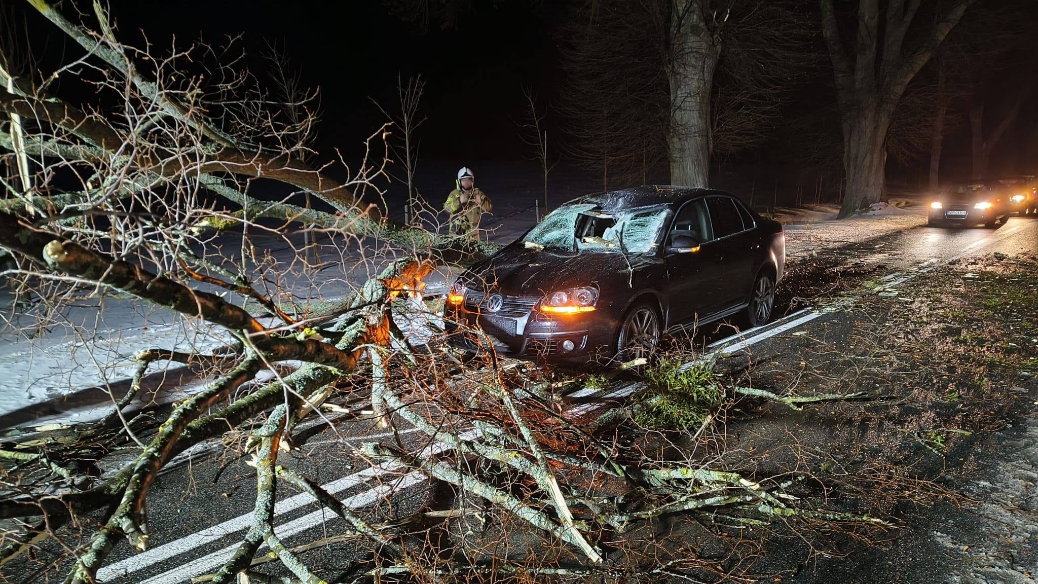 Do incydentu doszło w sobotę, 21 lutego, około godziny 19.30 na drodze wojewódzkiej nr 504 pomiędzy Krzyżewem a Narusą w gminie Frombork. W trakcie przejazdu na osobowego Volkswagena spadł konar drzewa.
