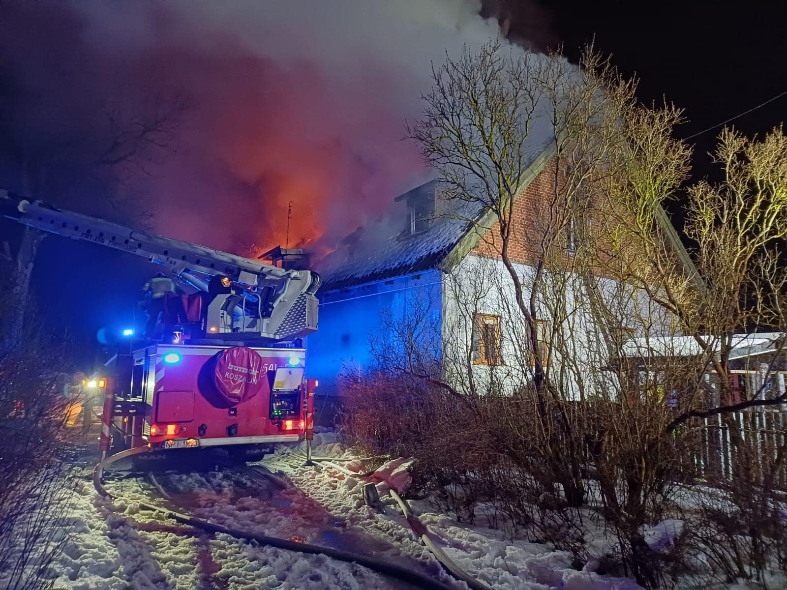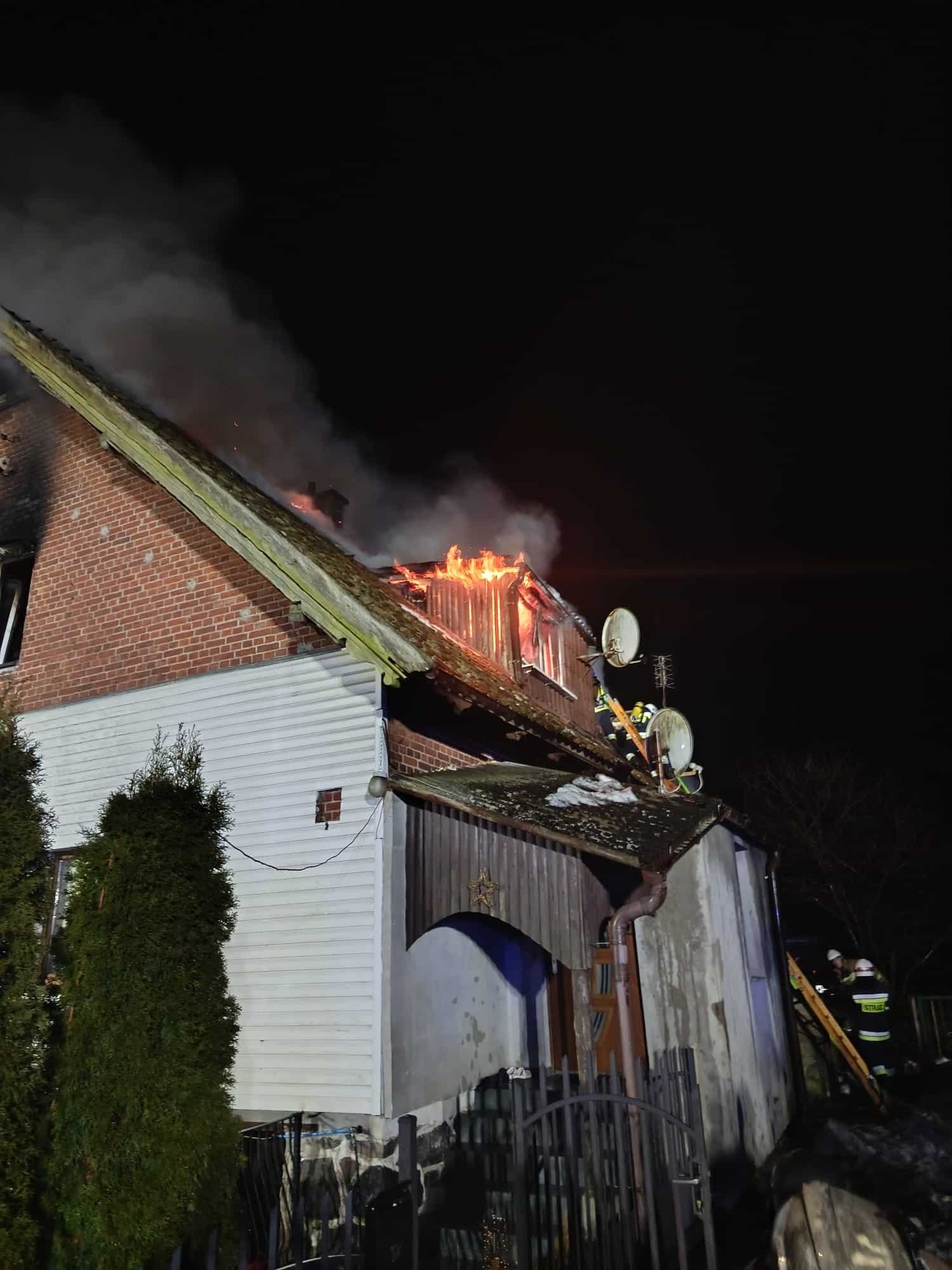 Pożar domu w Niedźwiedziach. Strażacy walczyli z ogniem przez całą noc