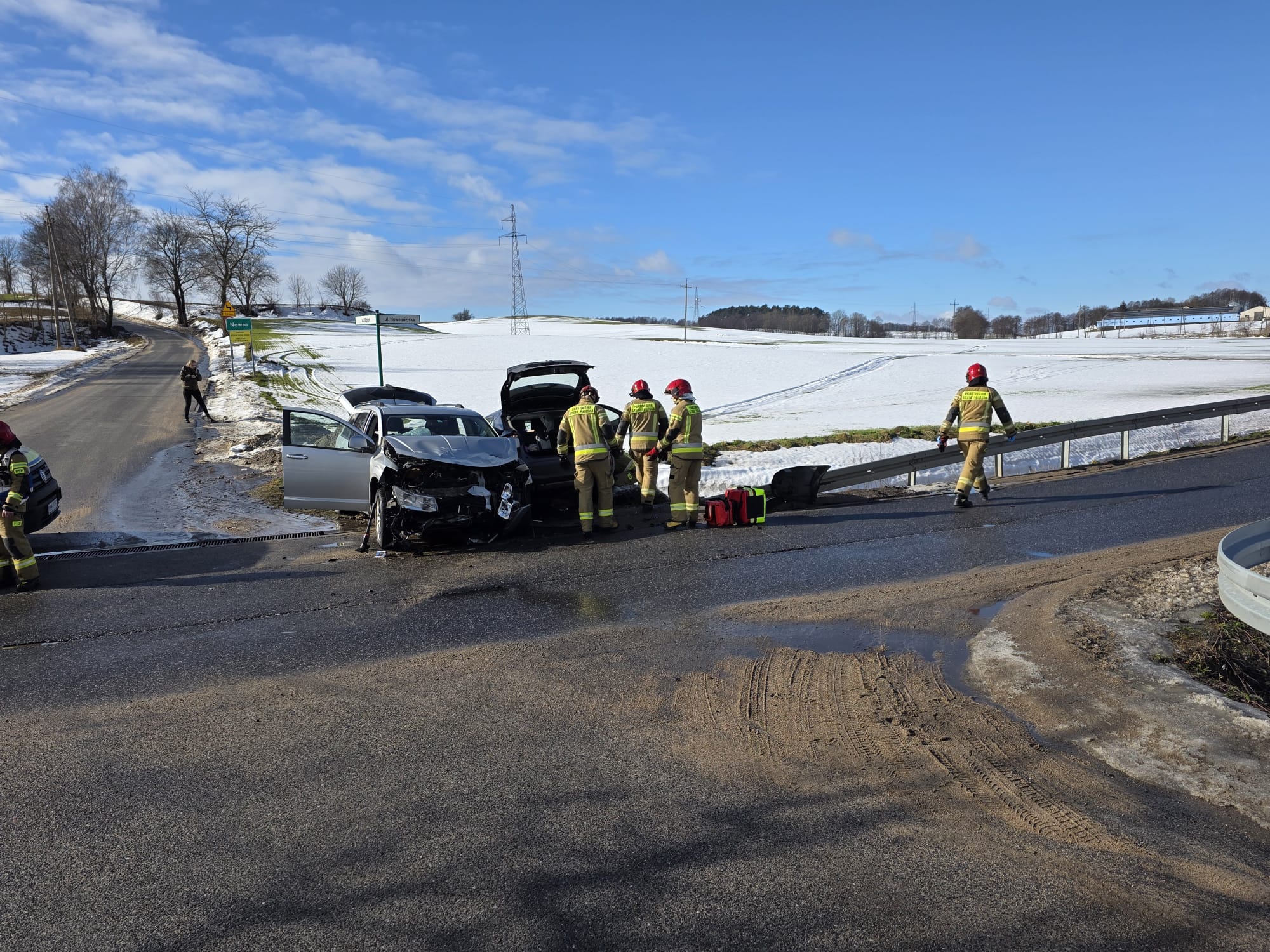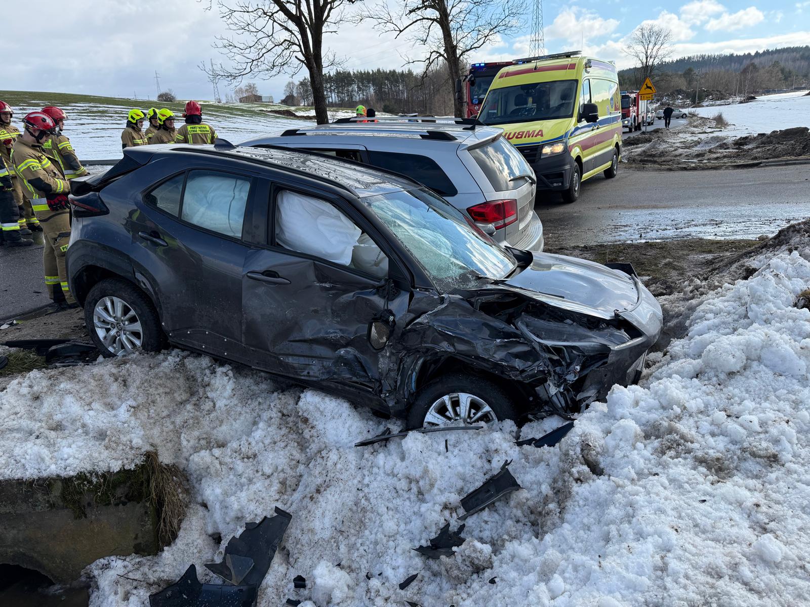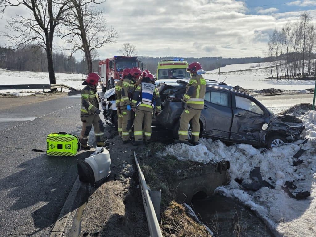 Do wypadku doszło wczoraj, 24 lutego 2026 roku, około godziny 12:20 na skrzyżowaniu ulic Nowomiejskiej i ul. Egipt w Bratianie. Zderzyły się tam dwa samochody osobowe. Siła uderzenia była na tyle duża, że konieczna była interwencja kilku jednostek ratowniczych.