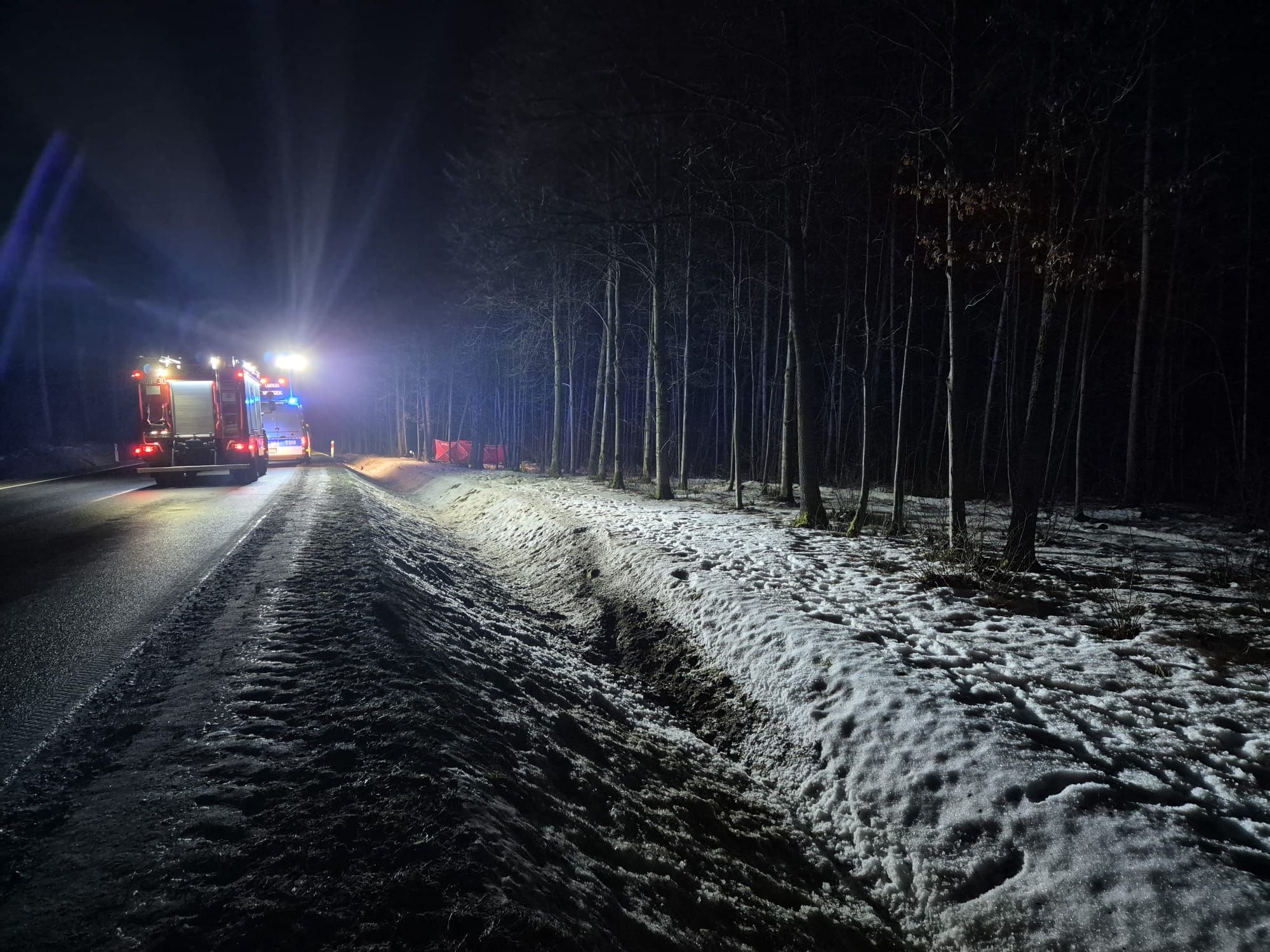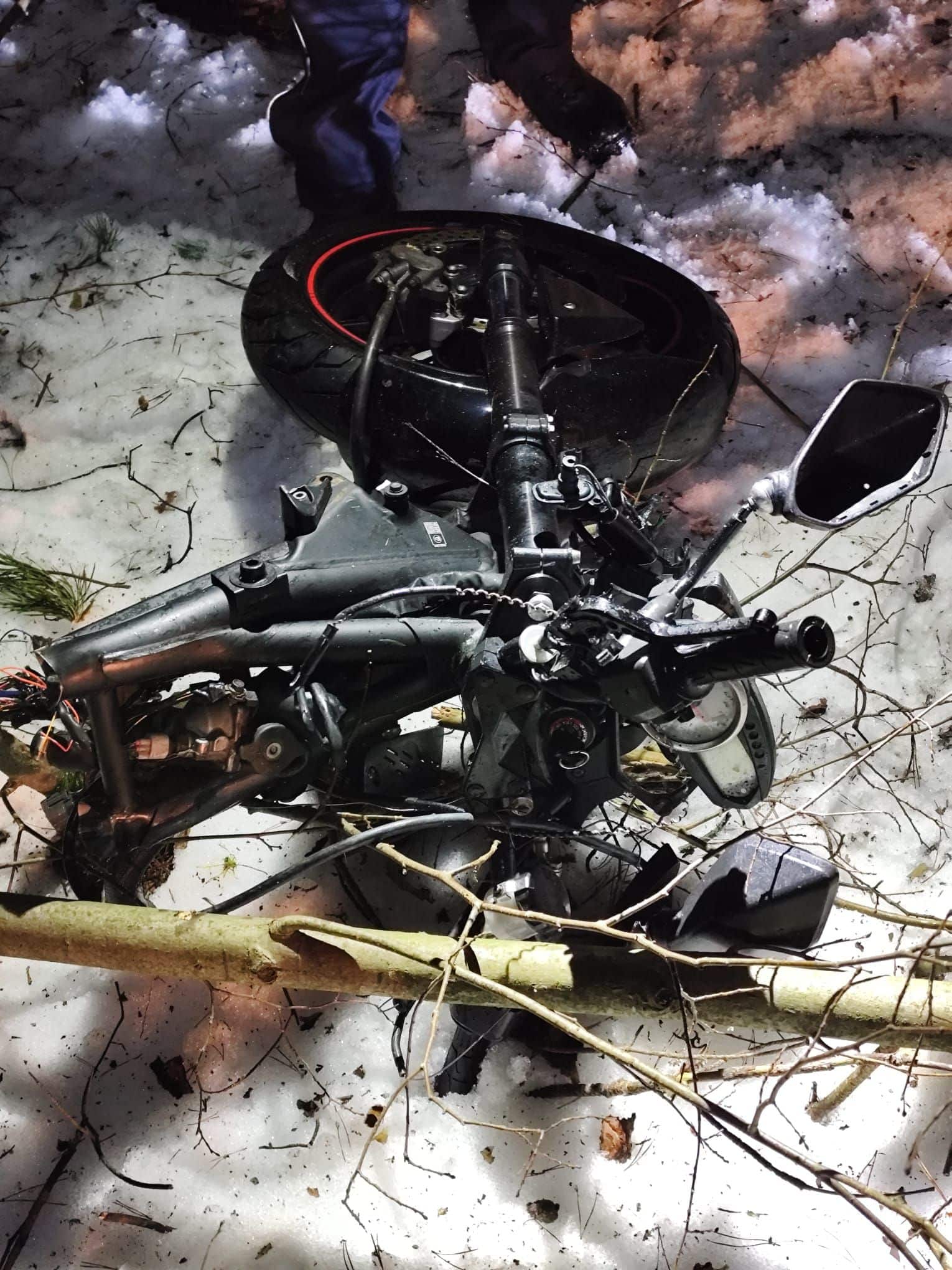 Siła uderzenia była na tyle duża, że motocyklista zatrzymał się dopiero kilka metrów od krawędzi jezdni, w głębi pobliskiego lasu.