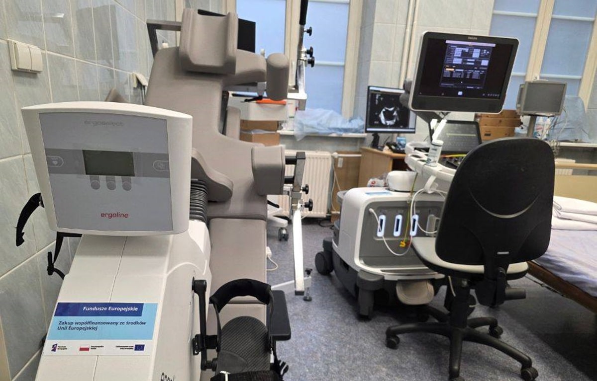 - Poradnia Kardiologiczna została doposażona w: stół pochyleniowy z osprzętem do diagnostyki kardiologicznej, pakiet echokardiograf + przenośny aparat echo + przyłóżkowy + stacja opisowa, system holterowski EKG i RR z licencją DICOM i integracją z serwerem PACS z wyposażeniem, ergospirometr, aparat do pomiaru wskaźnika kostka–ramię, ergometr oraz spirometr.