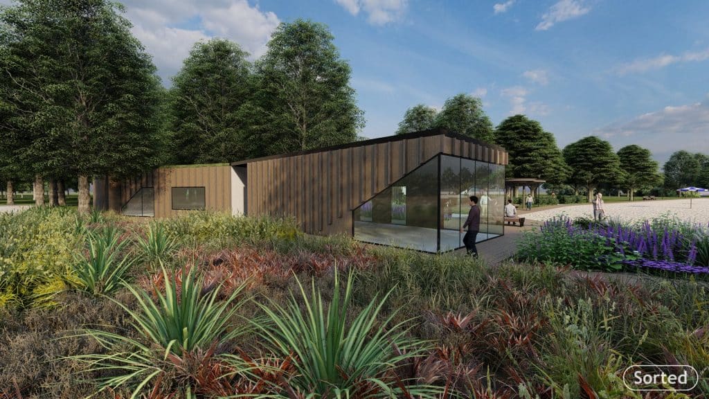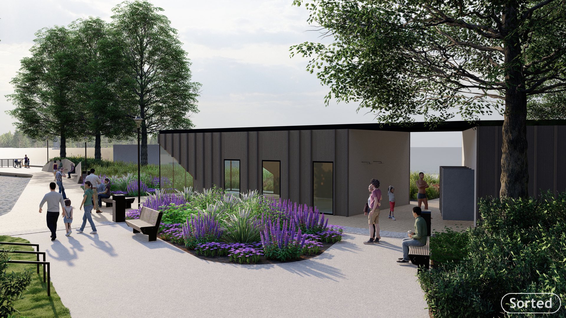 Projekt zakłada również powstanie nowoczesnej infrastruktury sanitarnej. W budynku znajdą się przebieralnie dla kobiet i mężczyzn oraz strefy pryszniców. Na zewnątrz powstaną dodatkowe prysznice pod zadaszonym podcieniem, a także ogólnodostępne toalety dla osób korzystających z plaży. W planach jest również przeszklone pomieszczenie wystawowe, które może być wykorzystywane do organizacji wydarzeń lub prezentacji.