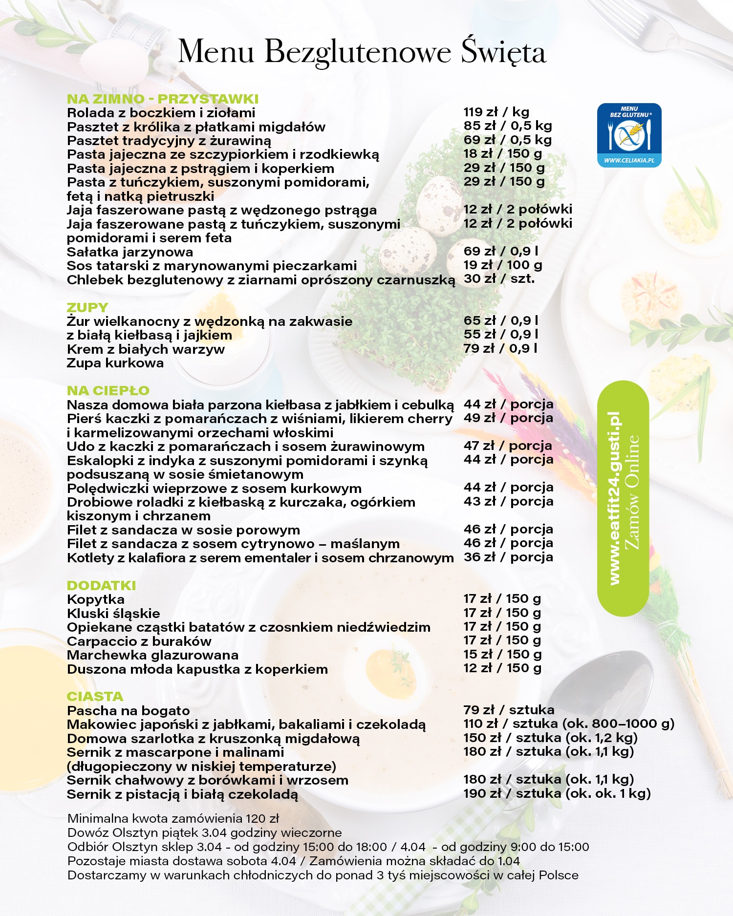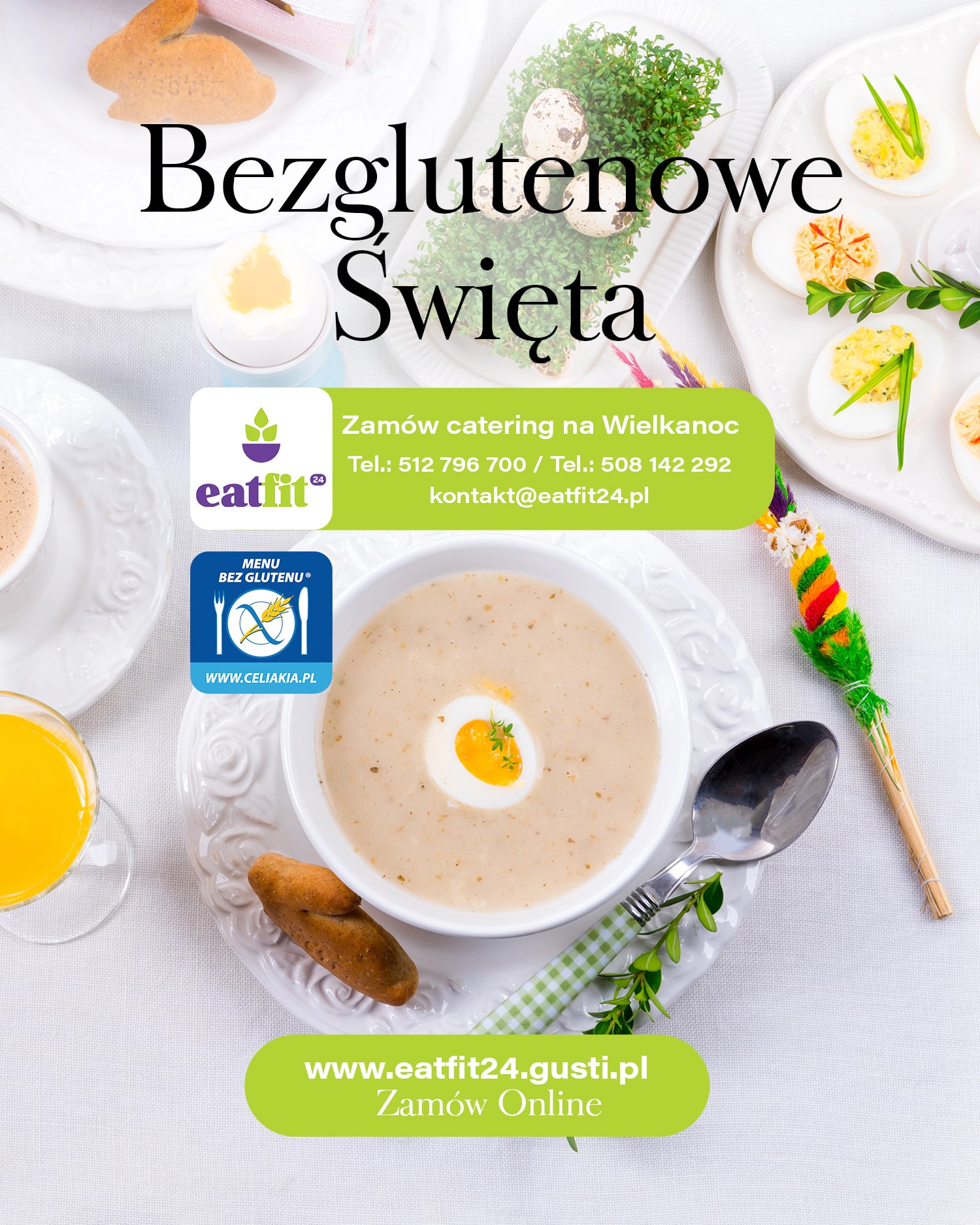 Wielkanoc bez glutenu nie musi oznaczać wyrzeczeń ani godzin spędzonych w kuchni. EatFit24 przygotował gotowe menu świąteczne, które łączy tradycyjne smaki z wygodą i bezpieczeństwem – zarówno dla mieszkańców Olsztyna, jak i innych miast w całej Polsce.