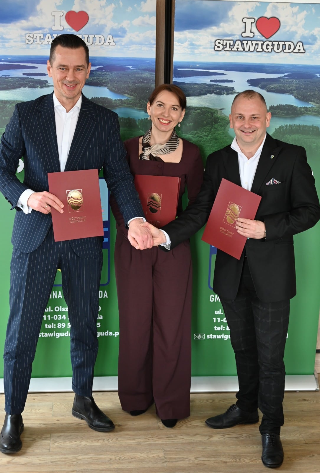 Wójt gminy Stawiguda Michał Kontaktowicz, wspólnie z wójt gminy Dywity Agnieszką Sakowską-Hrywniak oraz wójtem gminy Jonkowo Jackiem Jatkiewiczem, podpisali umowę partnerską dotyczącą realizacji projektu edukacyjnego „Z plecakiem w ŚWIAT – wiedzy i przygód smak”.