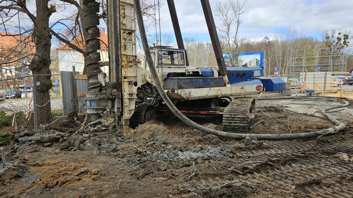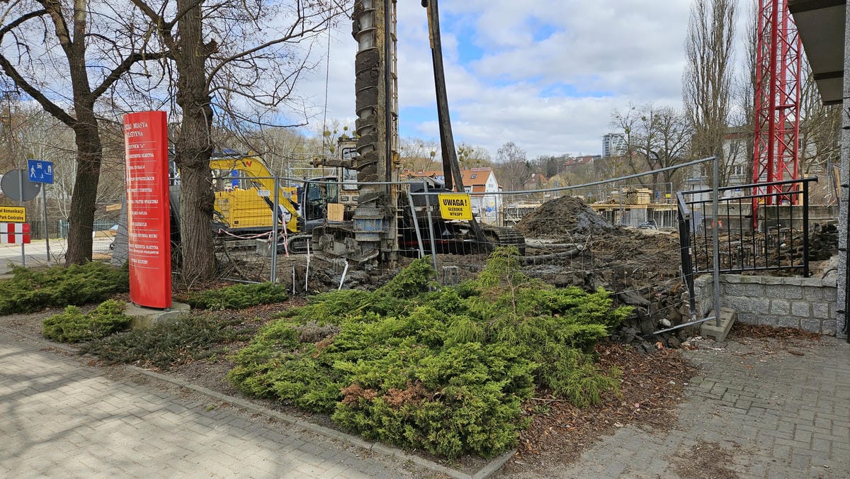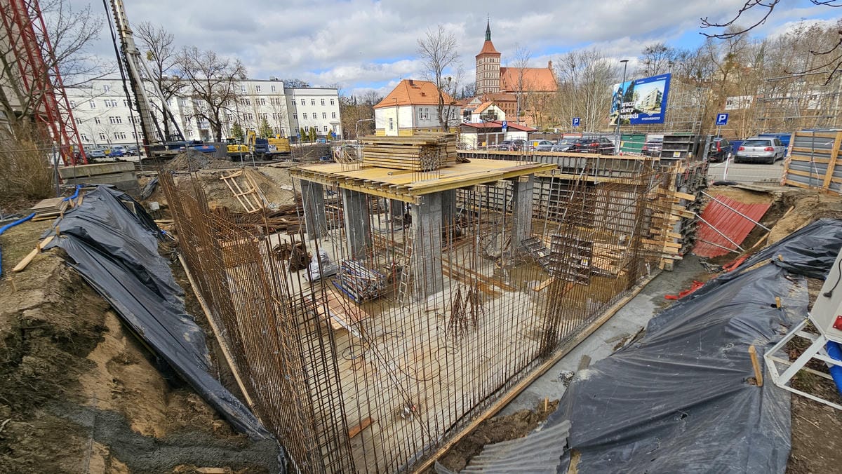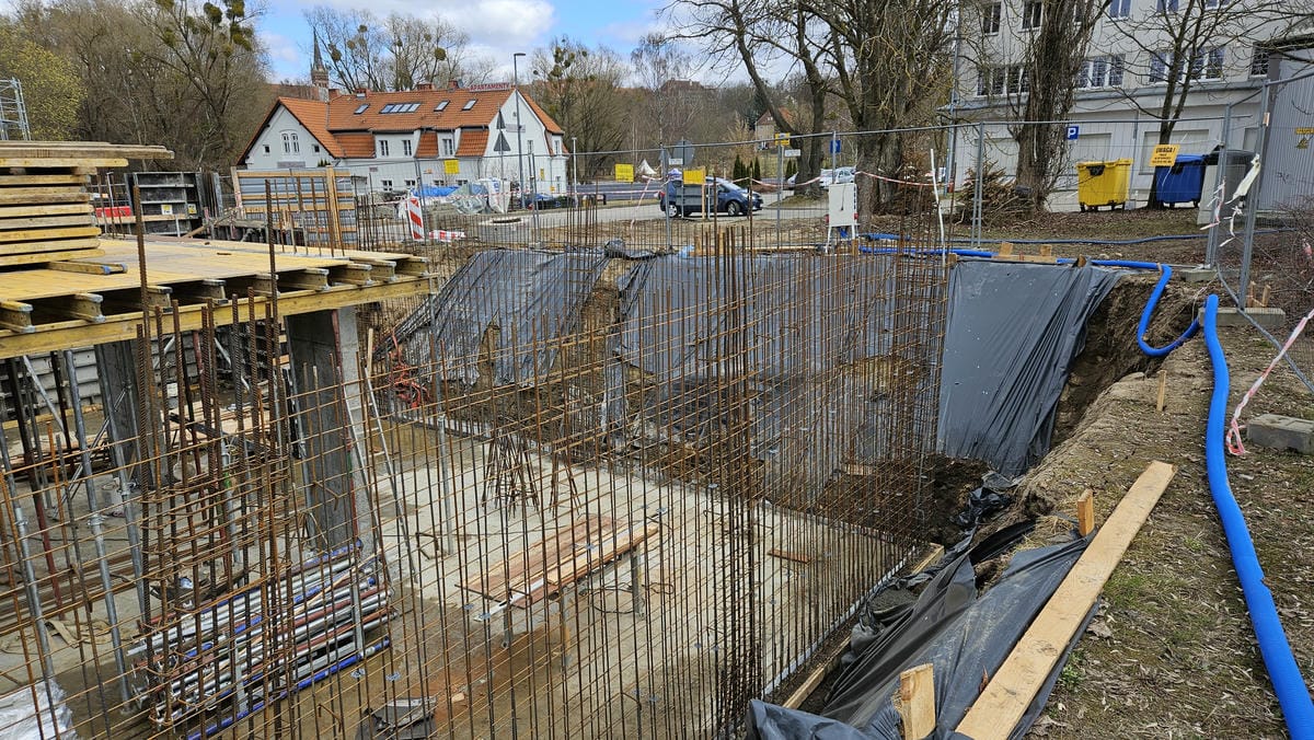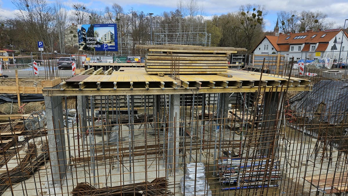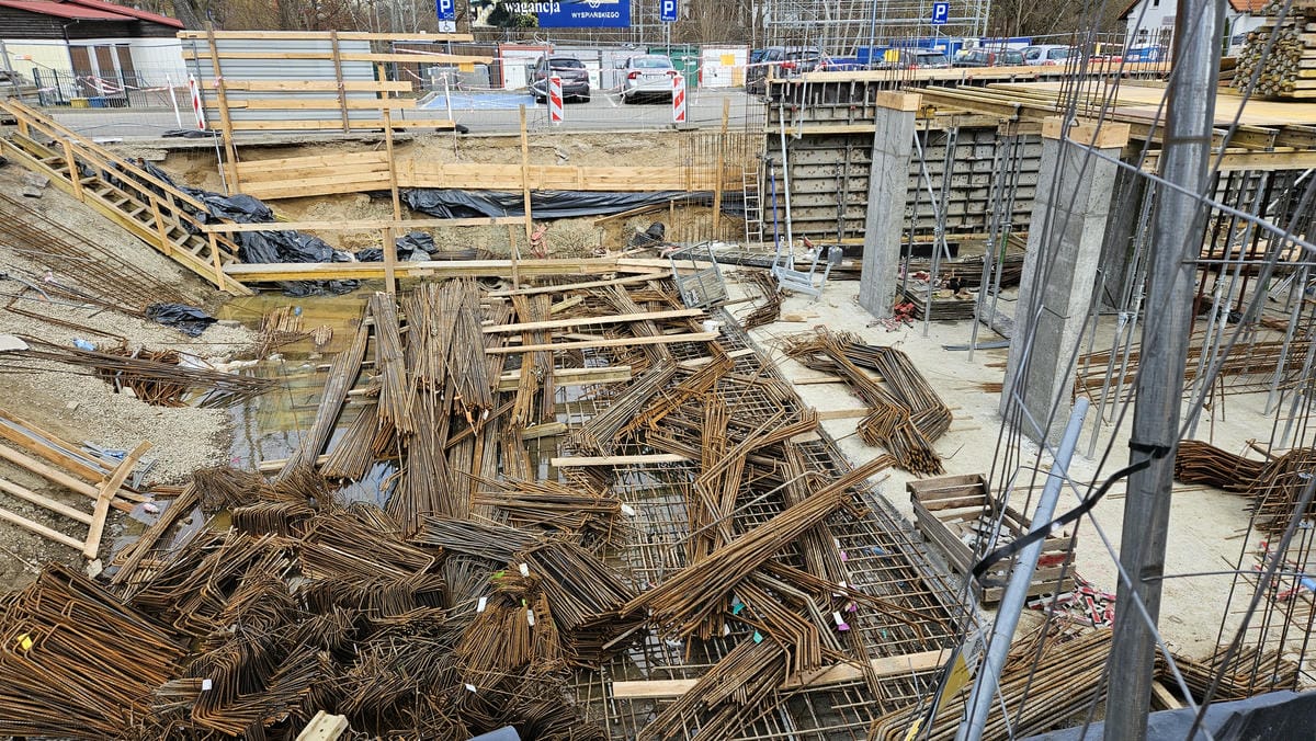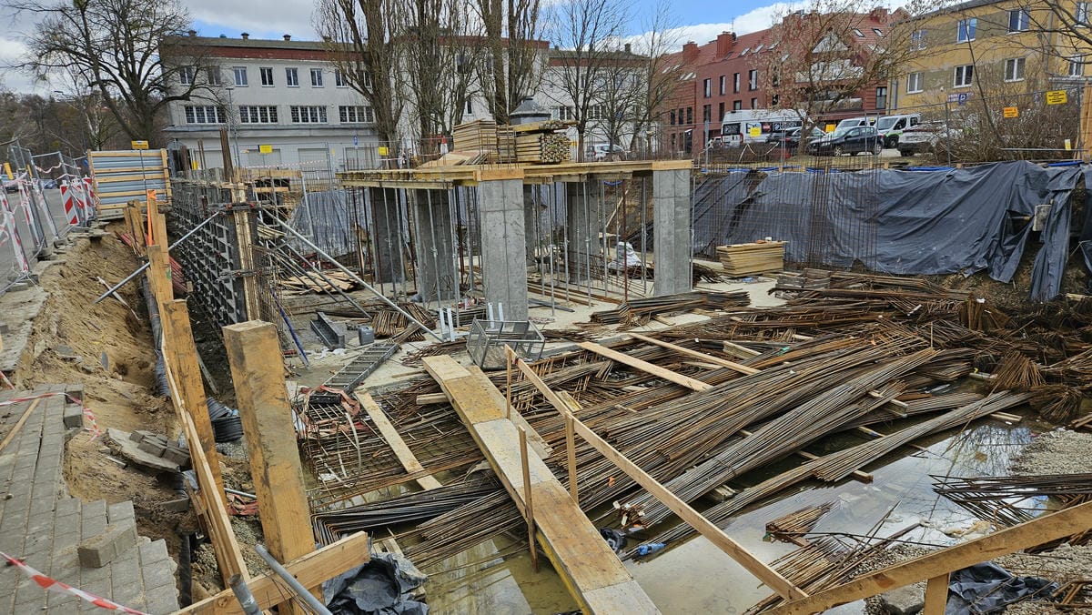 Zdjęcia z placu budowy pokazują zaawansowany etap prac – widoczne są fundamenty, szalunki oraz ciężki sprzęt budowlany. To potwierdza, że inwestycja przeszła z etapu formalności do realizacji.