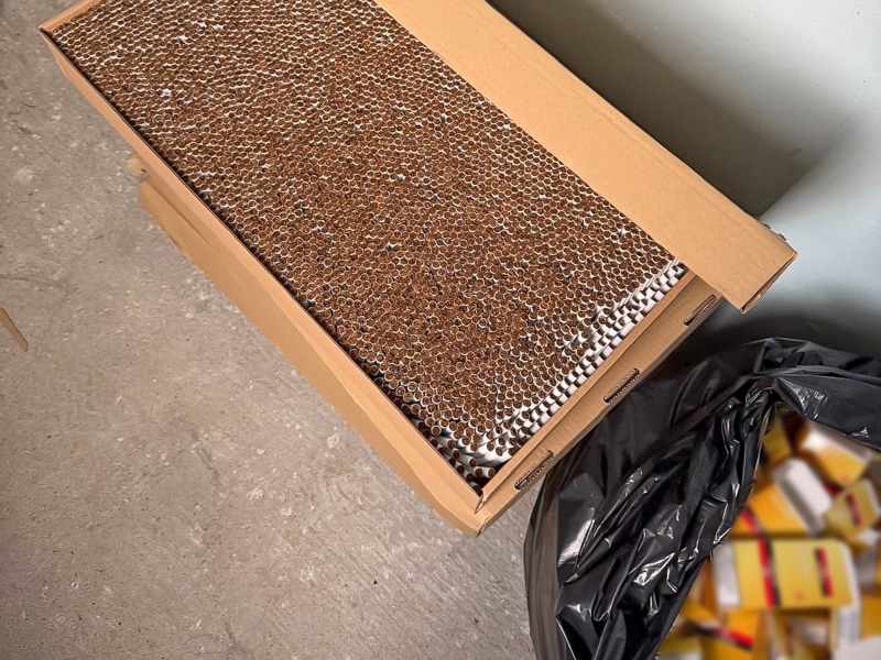 W trakcie działań zabezpieczono znaczną ilość nielegalnych wyrobów tytoniowych oraz opakowania do produktów znanej marki. Może to świadczyć o większej skali procederu i przygotowaniu towaru do dalszej dystrybucji.