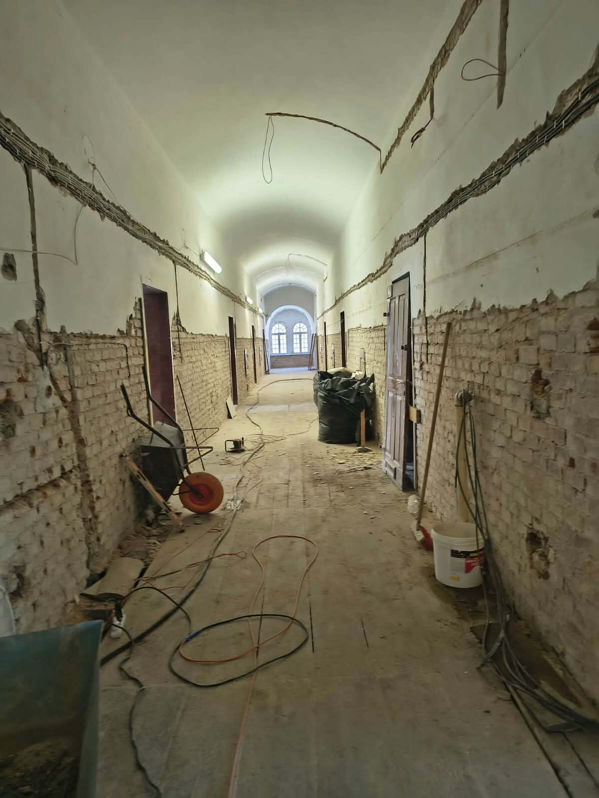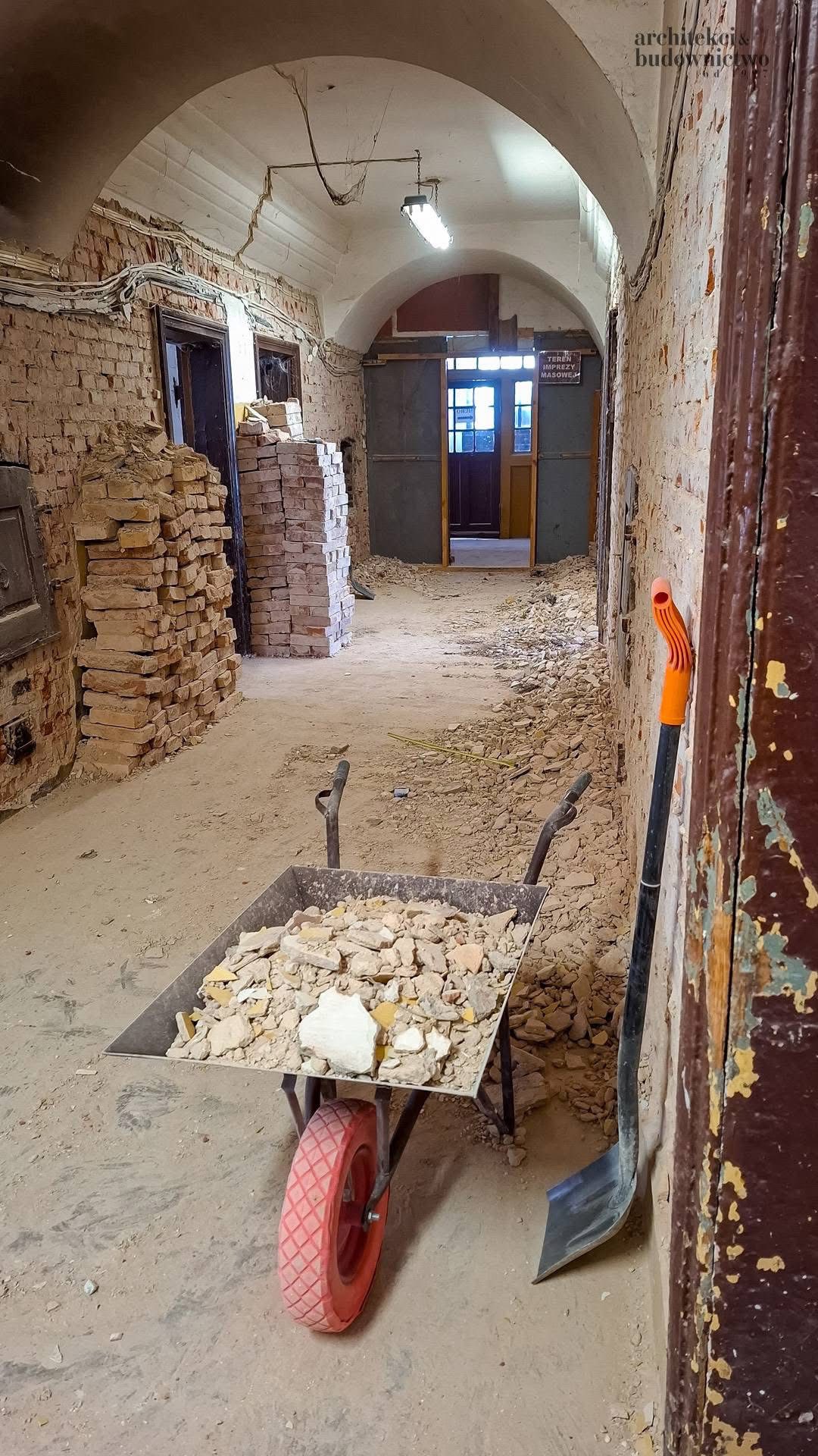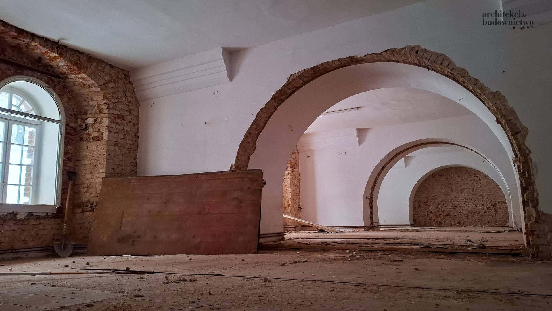 Zakres prac obejmuje m.in. usunięcie zniszczonych tynków, modernizację instalacji elektrycznej oraz przeciwpożarowej, a także renowację podłóg. Odsłaniane są również historyczne elementy konstrukcji, takie jak ceglane mury i drewniane belki, które mają zostać wyeksponowane.