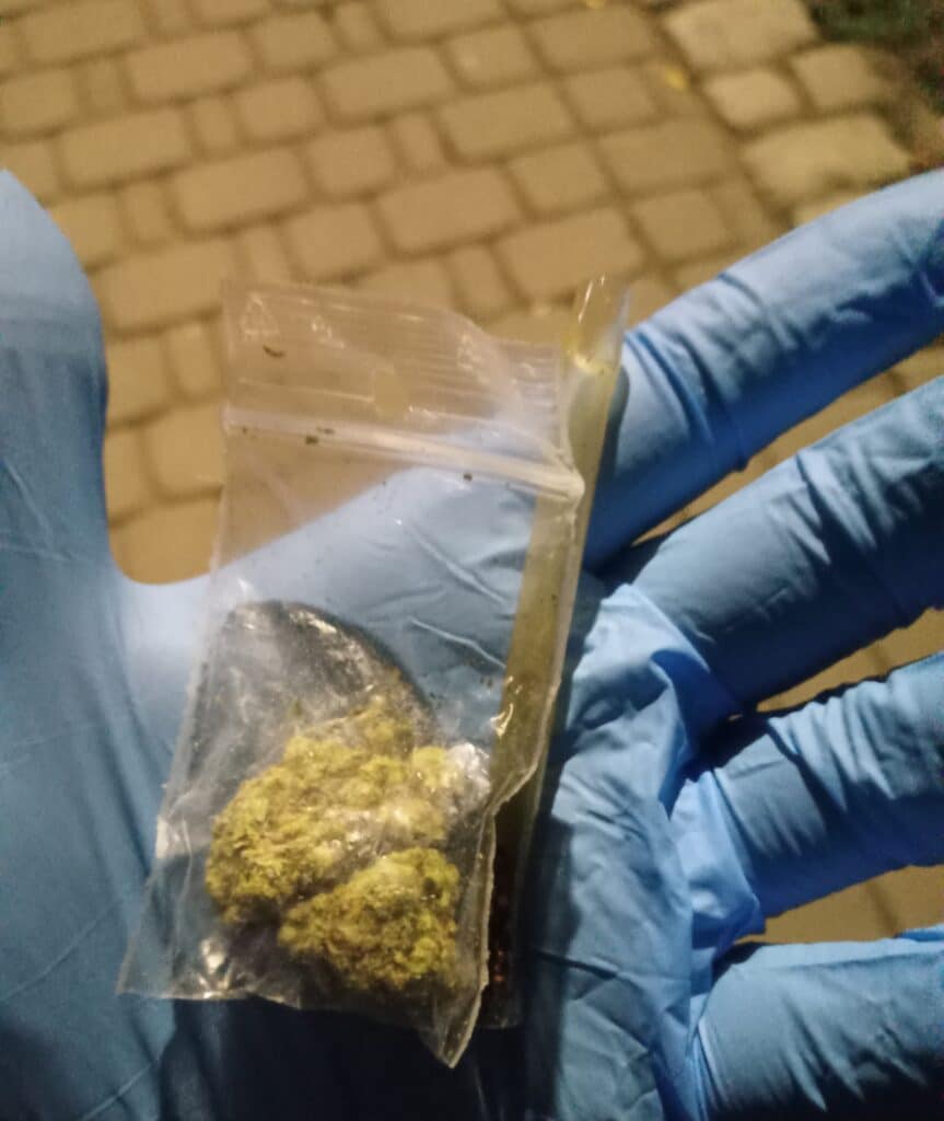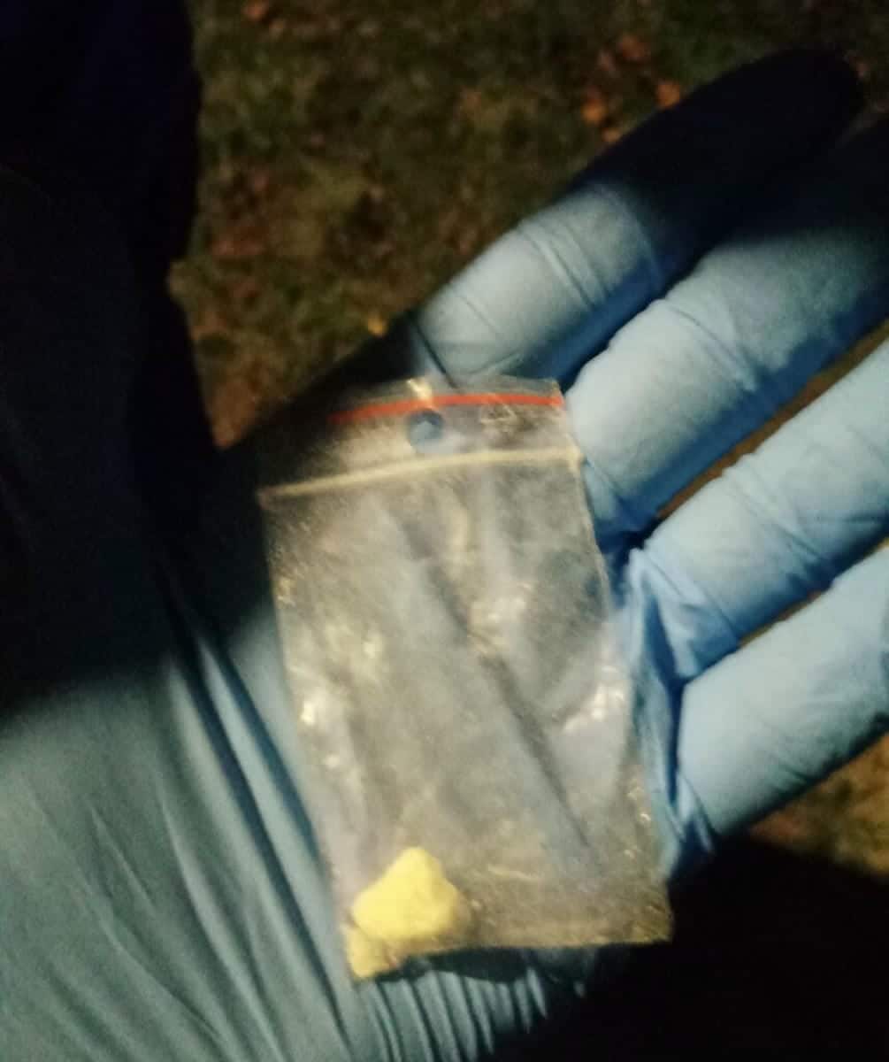 Podczas podjętej kontroli strażnicy ujawnili przy mężczyźnie woreczki strunowe z zawartością środków odurzających. W związku z podejrzeniem posiadania substancji zabronionych na miejsce wezwano patrol policji.