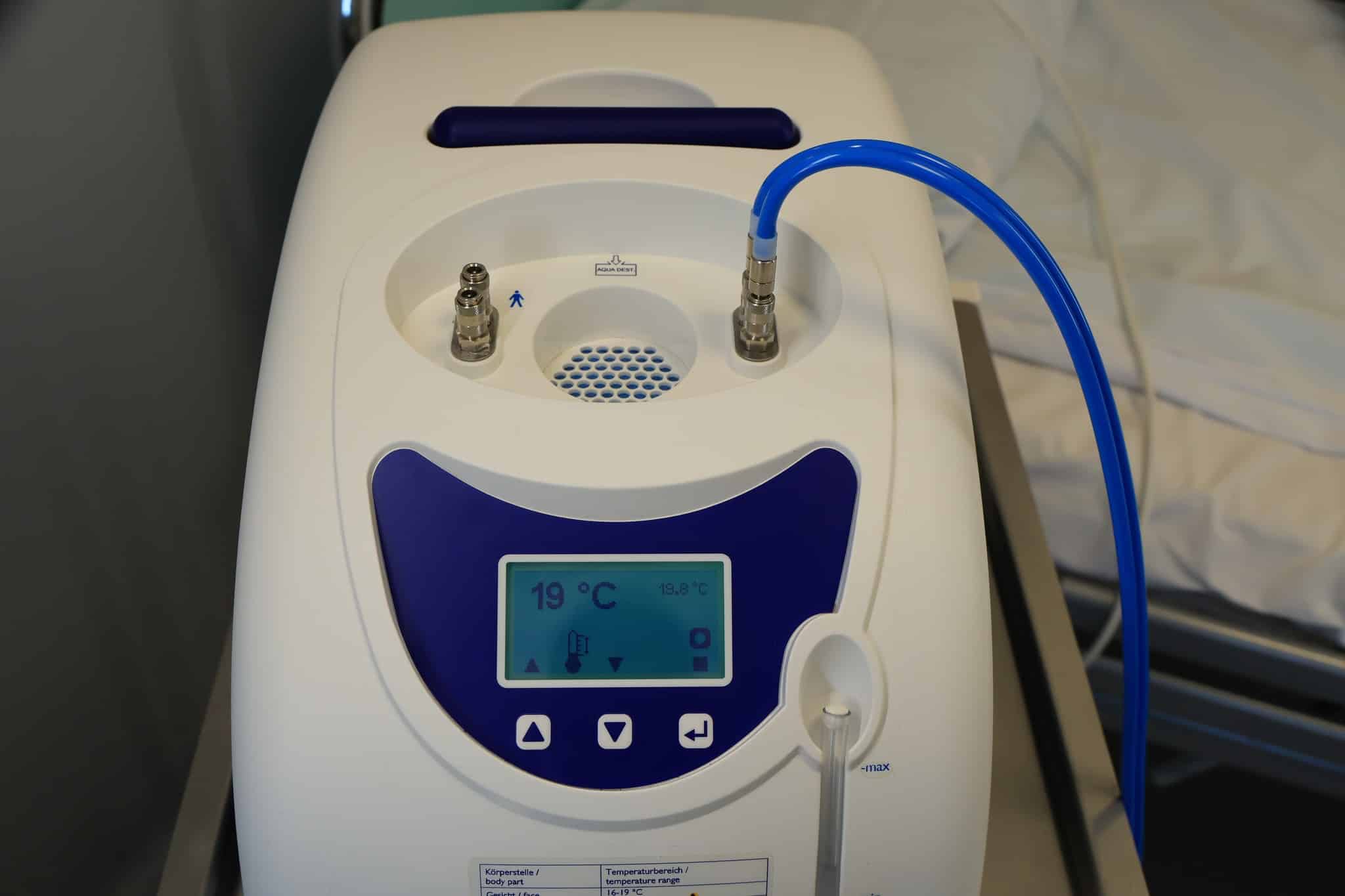System Hiloterm opiera się na kontrolowanym chłodzeniu, które odbywa się przy użyciu specjalnej maski dopasowanej do twarzy pacjenta. Dzięki temu możliwe jest równomierne rozprowadzanie temperatury bez ryzyka powikłań.