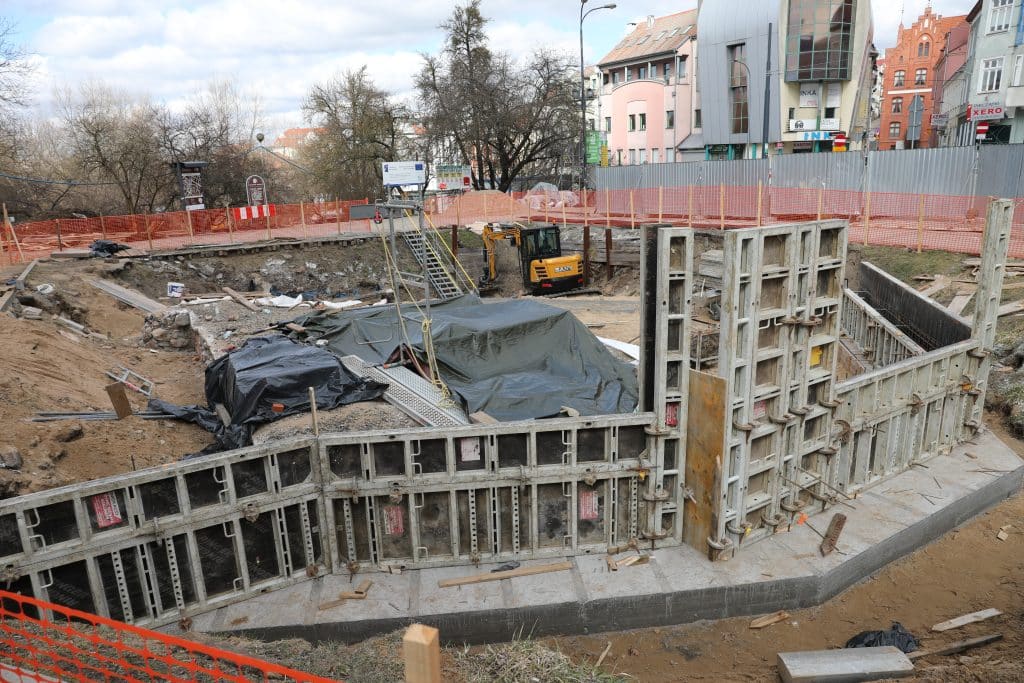 Na miejscu trwają roboty ziemne i konstrukcyjne. Patrząc na działania wynika, że inwestycja wyszła już z etapu przygotowawczego i eszła w fazę konkretnych prac. Widać ciężki sprzęt, szalunki i kolejne elementy wykonywane w obrębie wykopu, co potwierdza, że prace postępują zgodnie z planem.