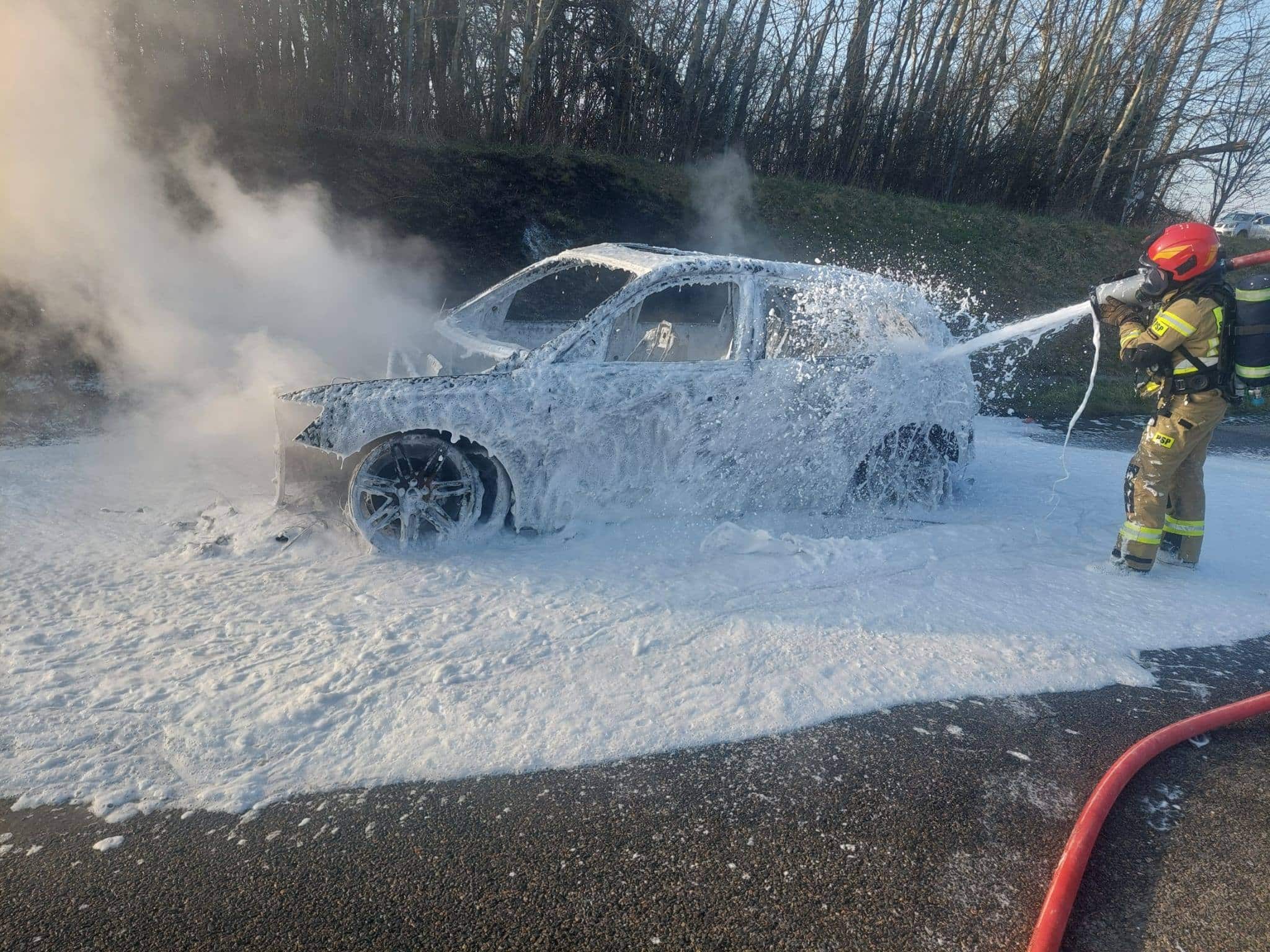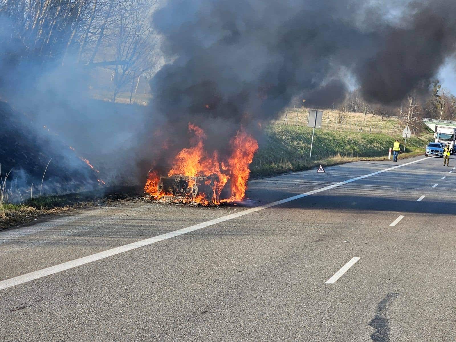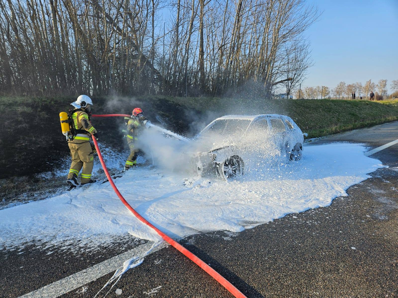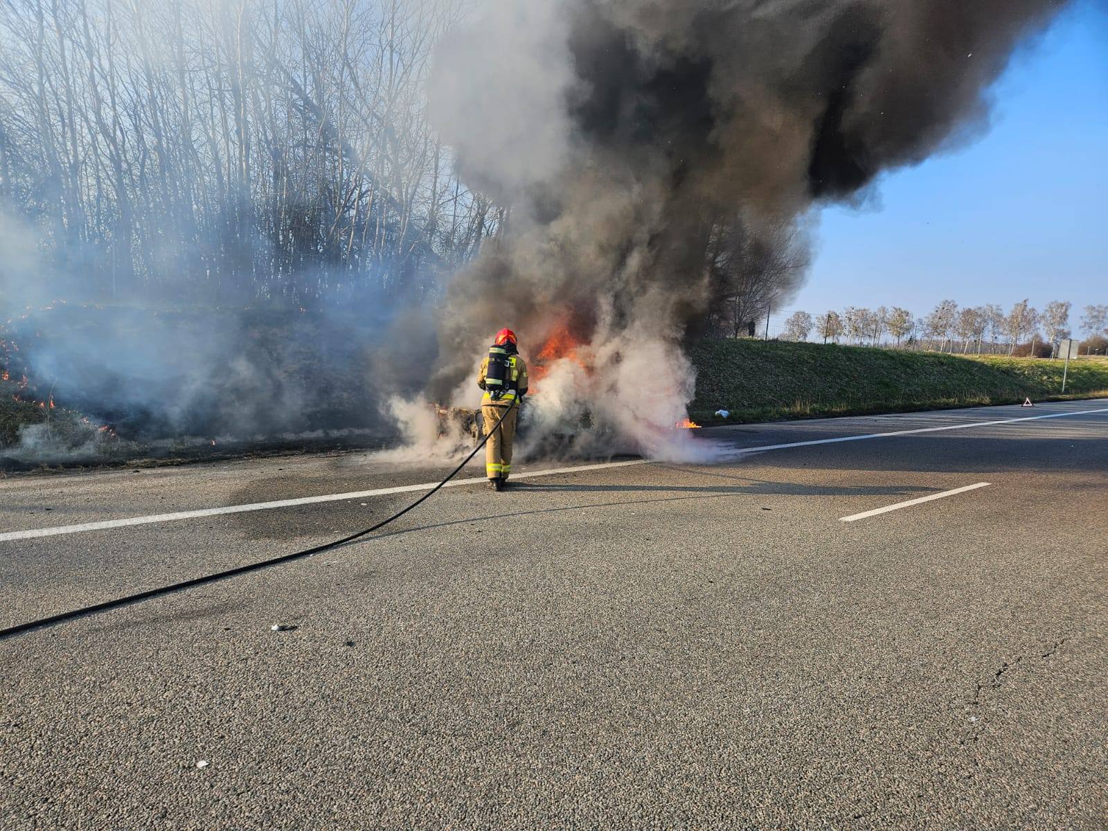 Pożar samochodu podczas jazdy na S22
