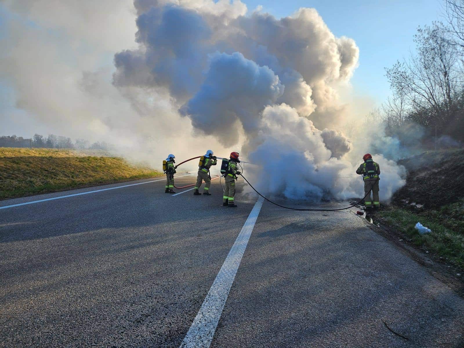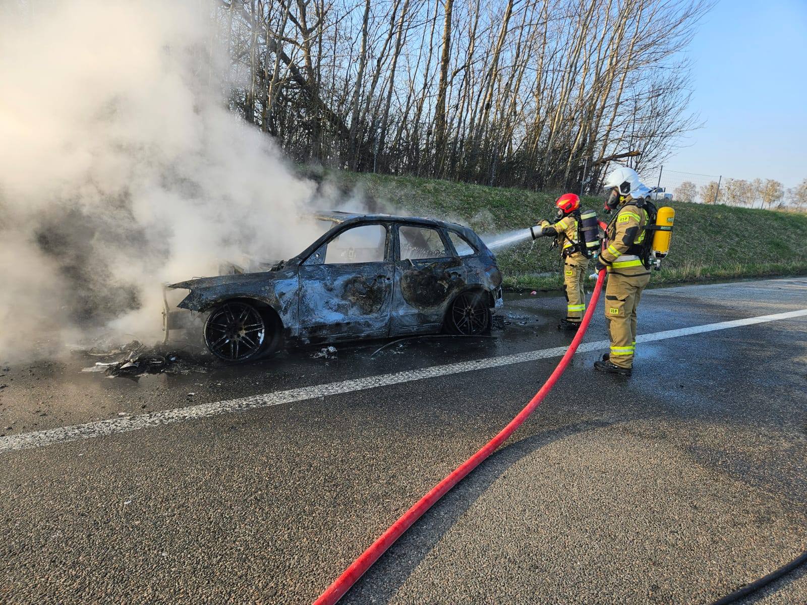 Do zdarzenia doszło 15 kwietnia na drodze ekspresowej S22 w okolicach Braniewa. Jak wynika z informacji przekazanych przez policję, w trakcie jazdy zapalił się samochód osobowy marki Audi. Ogień szybko objął pojazd, a nad drogą unosiły się kłęby czarnego dymu.