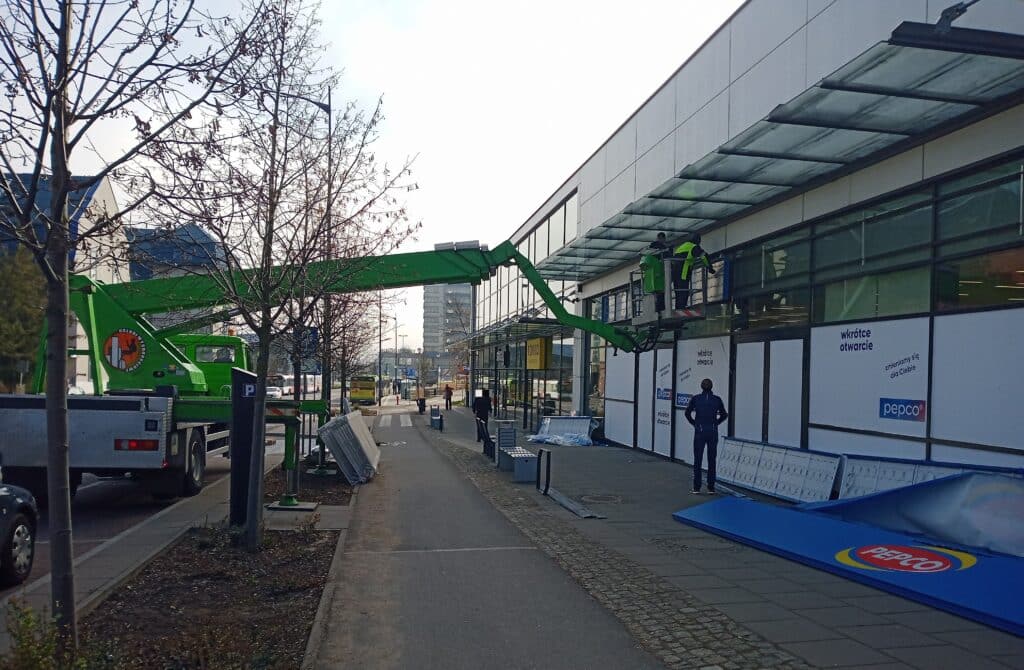Prace prowadzone nad głowami ludzi bez żadnych zabezpieczeń? Taka sytuacja miała miejsce przy jednym z centrów handlowych w Olsztynie.