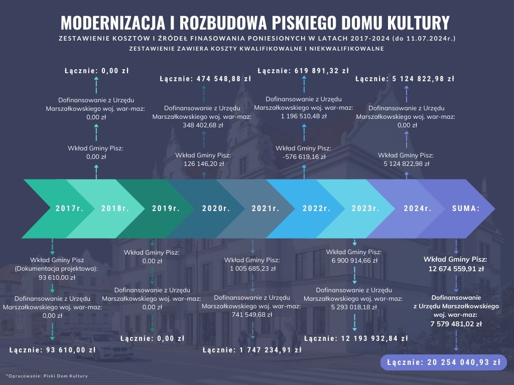 Niedokończona inwestycja w Piszu będzie miała poważne konsekwencje finansowe dla samorządu. Chodzi o konieczność zwrotu blisko 11 mln zł dofinansowania, które zostało przeznaczone na modernizację i rozbudowę Piskiego Domu Kultury.