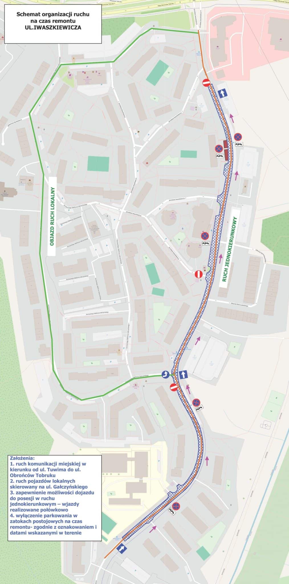 W tym czasie autobusy będą kursować w kierunku od ul. Tuwima do al. Obrońców Tobruku, natomiast ruch lokalny zostanie skierowany na ul. Gałczyńskiego. Dojazd do posesji będzie możliwy, choć w ograniczonym zakresie i realizowany etapami. Dodatkowo obowiązywać będzie zakaz parkowania w zatokach postojowych. Miasto apeluje o stosowanie się do oznakowania oraz poleceń osób kierujących ruchem. „Nie parkujcie tam, gdzie trwa remont i nie próbujcie wciskać się autem na siłę” – apeluje Urząd Miasta Olsztyna.