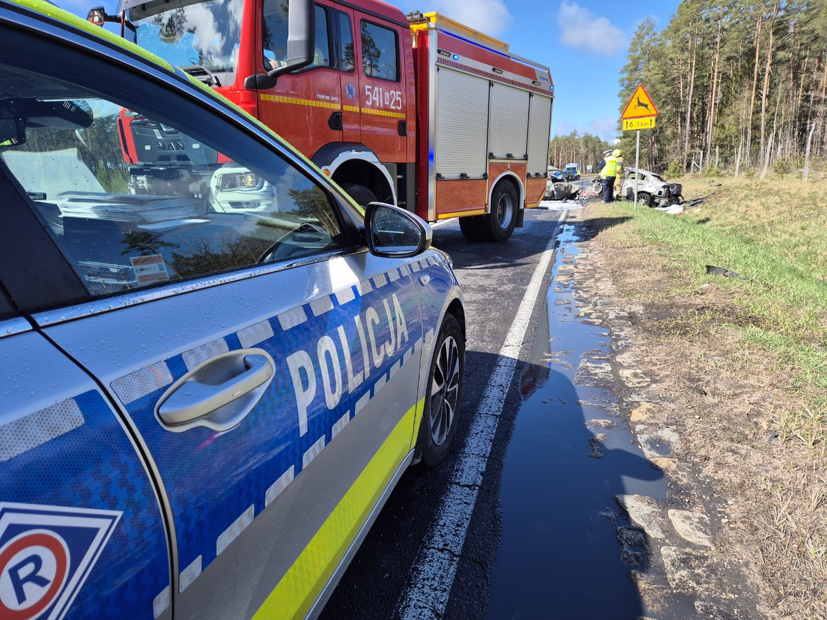 Dwa samochody osobowe zderzyły się na trasie między Rucianem-Nidą a Piszem. Chwilę później pojazdy stanęły w ogniu. Bilans tego tragicznego zdarzenia jest dramatyczny – zginęły dwie osoby.