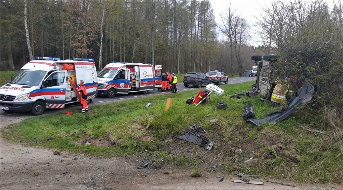 Jak wstępnie ustalono 36-letni kierujący pojazdem marki Renault Kangoo, jechał od strony Bartoszyc w kierunku Lidzbarka Warmińskiego. Po wykonaniu manewru wyprzedzania pojazdu jednośladowego z nieznanych przyczyn zjechał na pobocze, do przydrożnego rowu, gdzie uderzył w przepust drogowy po czym samochód siłą rozpędu podbiło do góry i przewrócił się on na dach. W wyniku zdarzenia 36-letni mieszkaniec Bartoszyc został przewieziony z obrażeniami ciała do Szpitala Powiatowego w Bartoszycach.