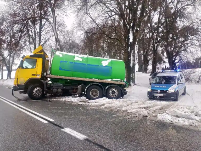 Ślisko na Warmii i Mazurach. Kolejna ciężarówka unieruchomiona