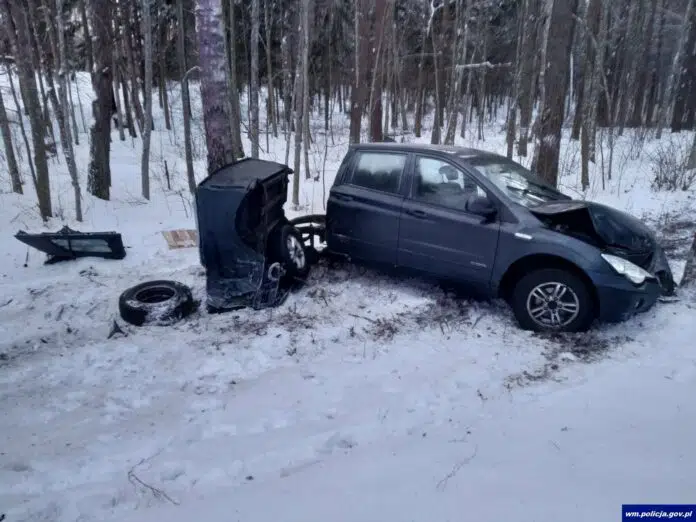 Auto po uderzeniu w drzewo rozpadło się na pół