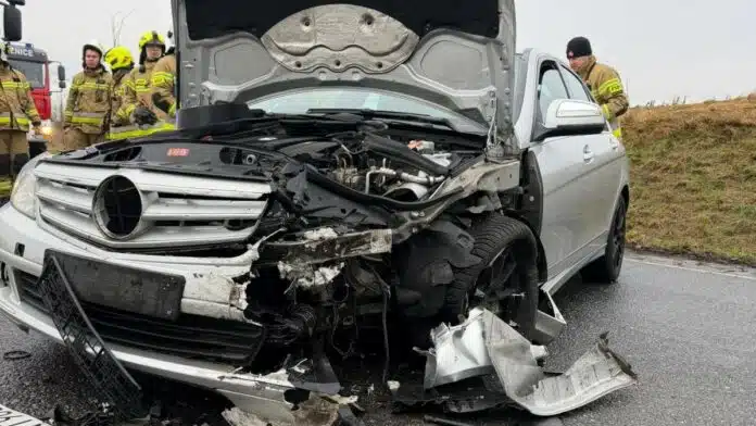 Karambol na DK16. 3 osoby trafiły do szpitala – w tym 7-letnie dziecko