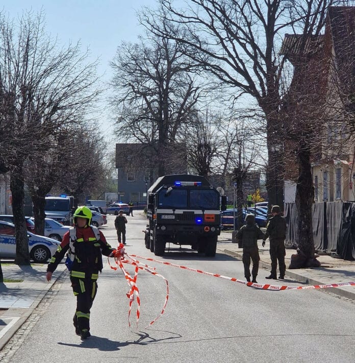 Z powodu znalezienia niewybuchu policja zamknęła skrzyżowanie ul. Szarych Szeregów z Jagiellończyka. Ewakuowano kilkudziesięciu mieszkańców okolicznych bloków. Teren został całkowicie odizolowany.