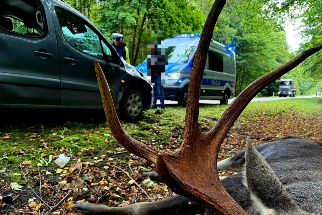 Łoś nagle wbiegł na jezdnię. Finał zderzenia jest tragiczny
